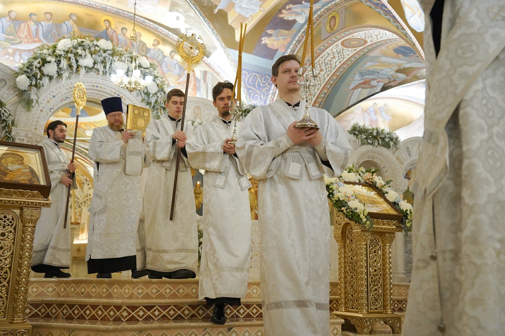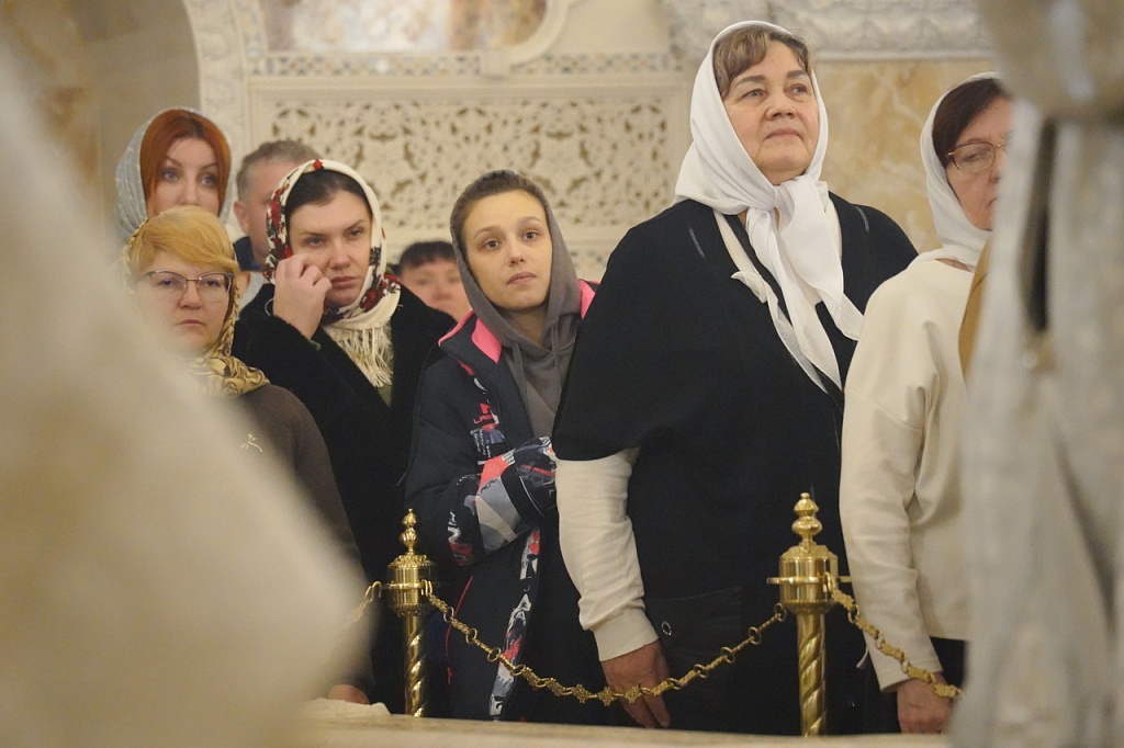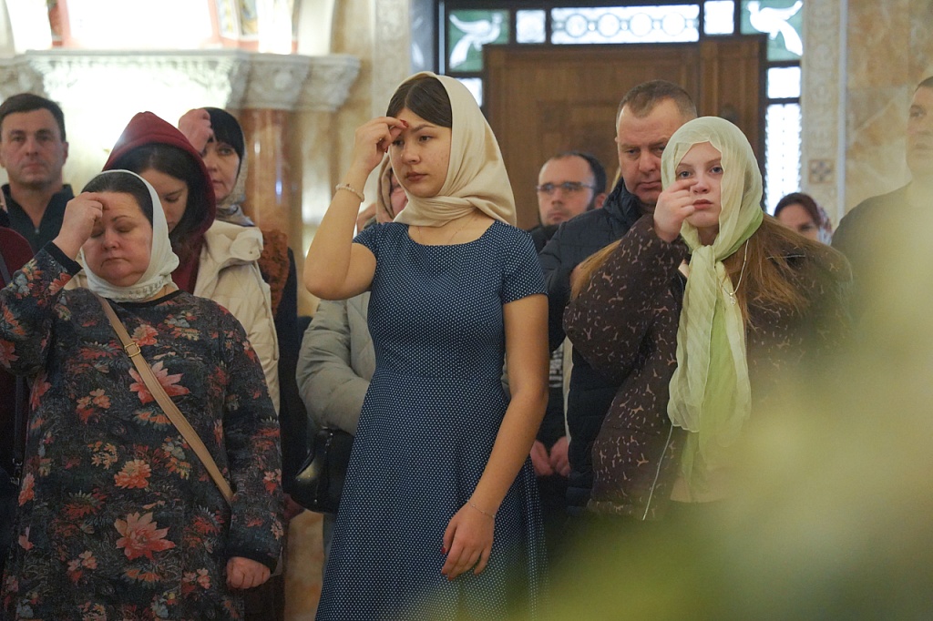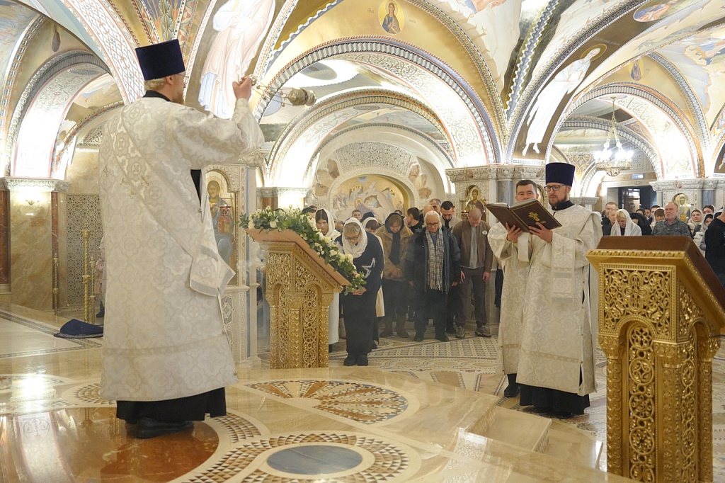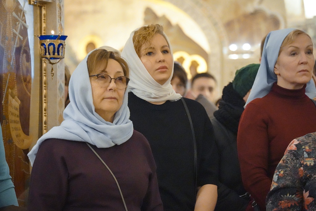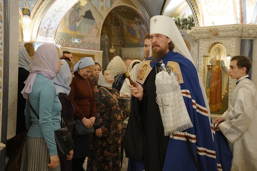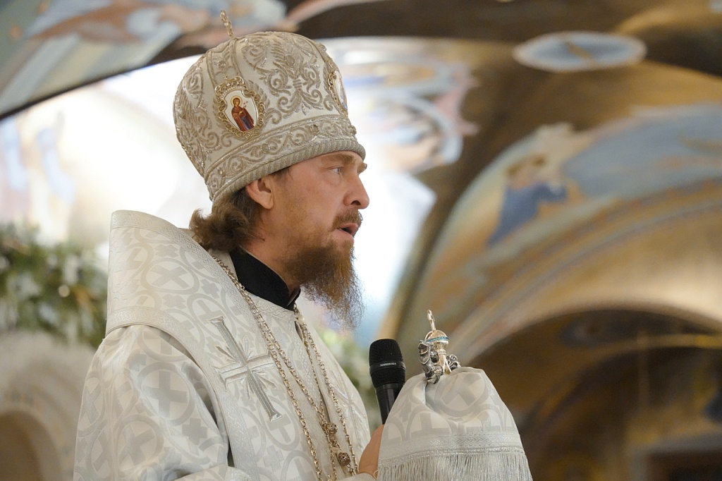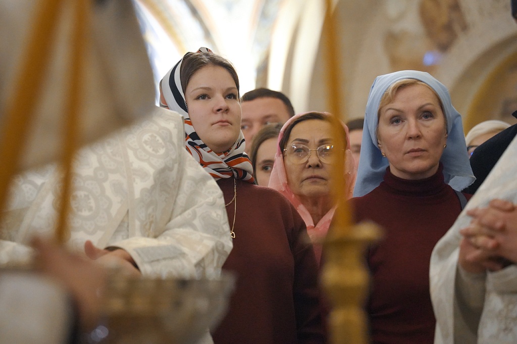 На службе был прочитан отрывок из Евангелия от Матфея (Мф.3:13-17), в котором говорится о том, как Иисус Христос пришел на Иордан к Иоанну – креститься от него. Пророк видит в Иисусе Бога и говорит: «Мне надобно креститься от Тебя». Но Господь отвечает, что «так надлежит нам исполнить всякую правду». После крещения Иисуса Иоанн увидел открывшееся небо, Духа Божия, который в виде голубя спускается с небес на Спасителя. С неба звучит голос Бога Отца: «Сей есть Сын Мой возлюбленный, в Котором Мое благоволение».