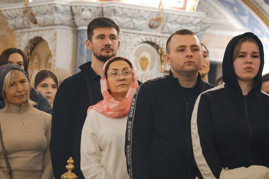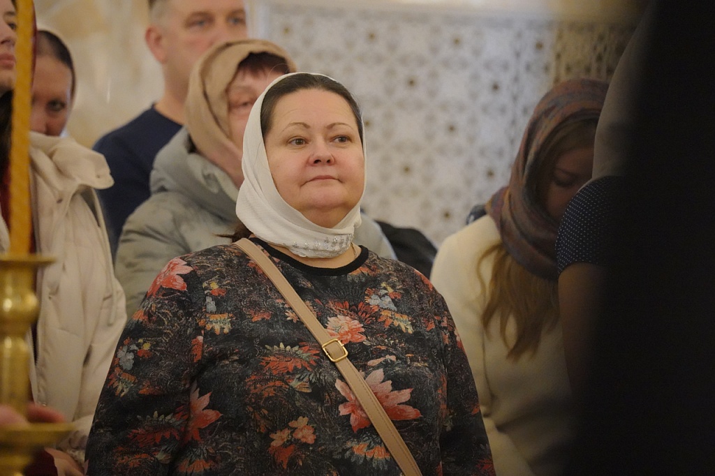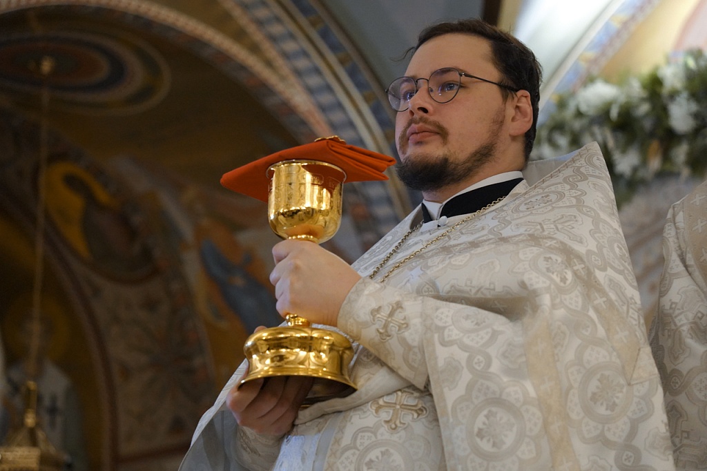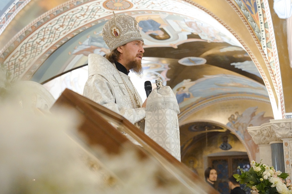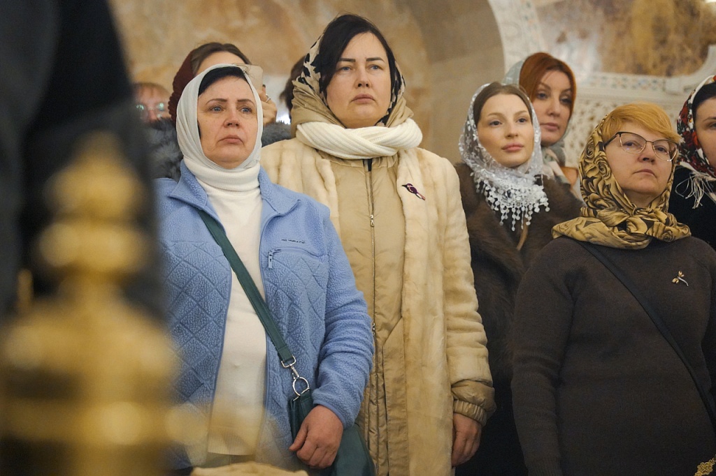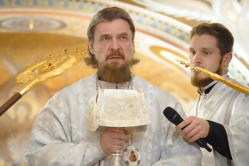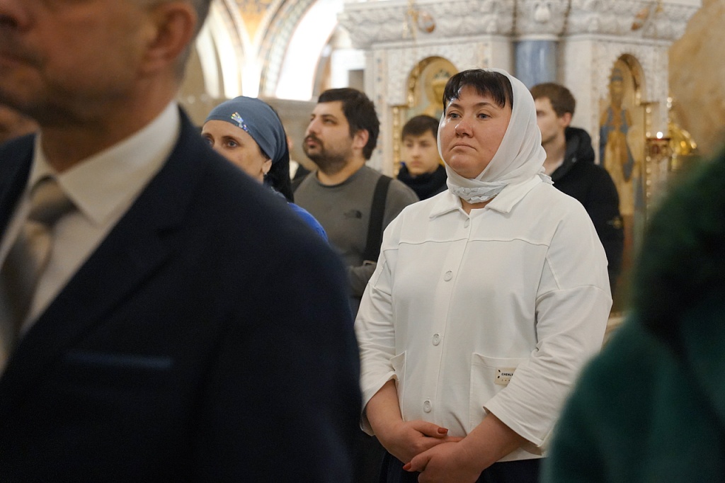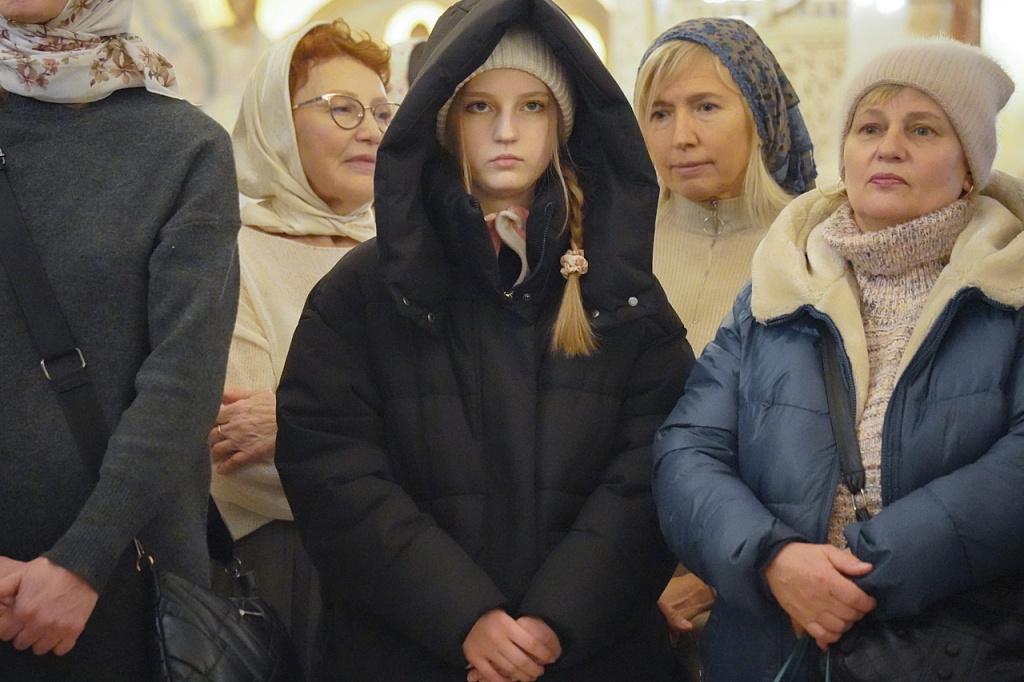 На службе был прочитан отрывок из Евангелия от Матфея (Мф.3:13-17), в котором говорится о том, как Иисус Христос пришел на Иордан к Иоанну – креститься от него. Пророк видит в Иисусе Бога и говорит: «Мне надобно креститься от Тебя». Но Господь отвечает, что «так надлежит нам исполнить всякую правду». После крещения Иисуса Иоанн увидел открывшееся небо, Духа Божия, который в виде голубя спускается с небес на Спасителя. С неба звучит голос Бога Отца: «Сей есть Сын Мой возлюбленный, в Котором Мое благоволение».