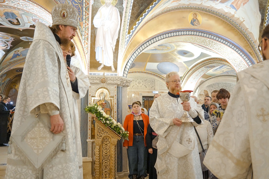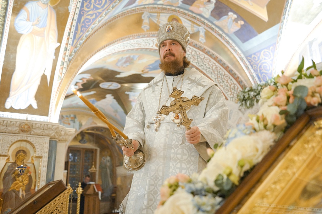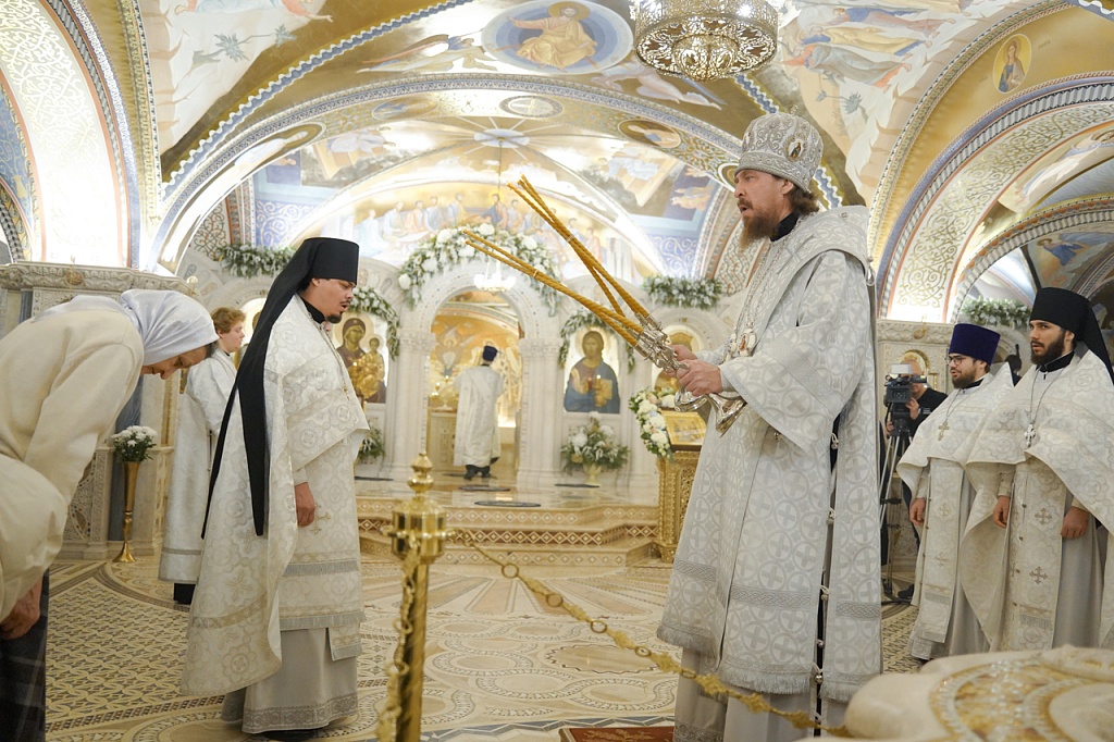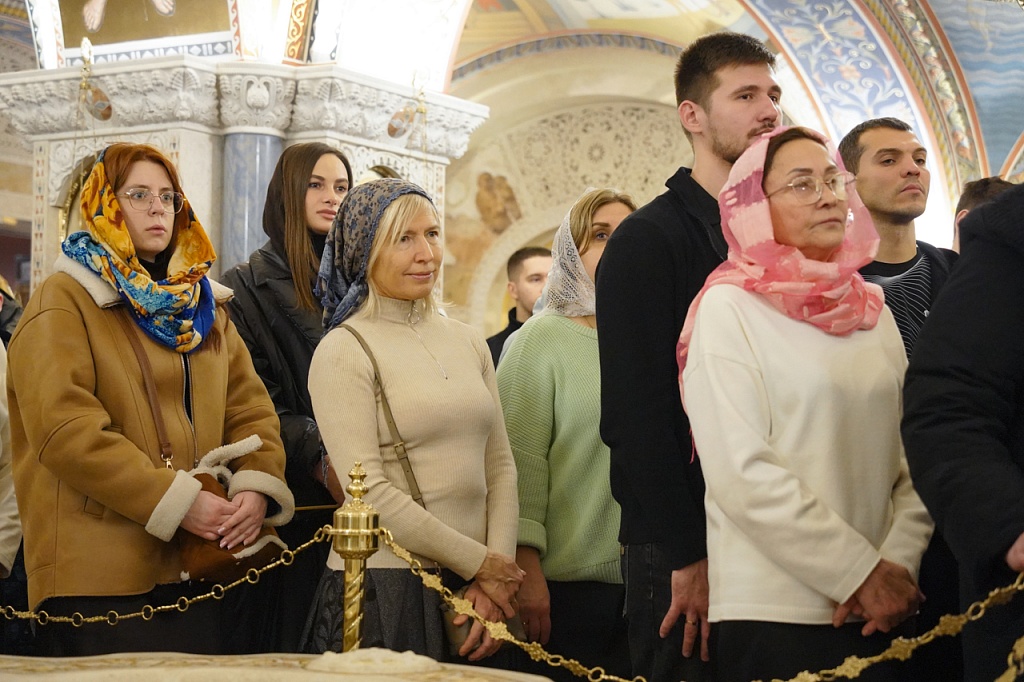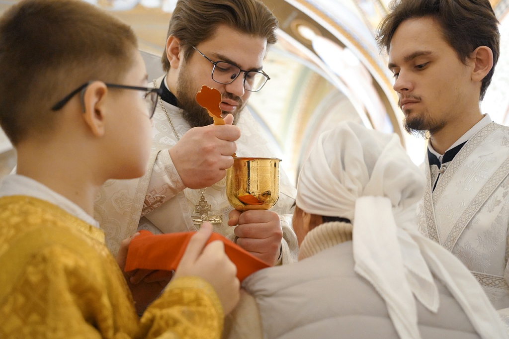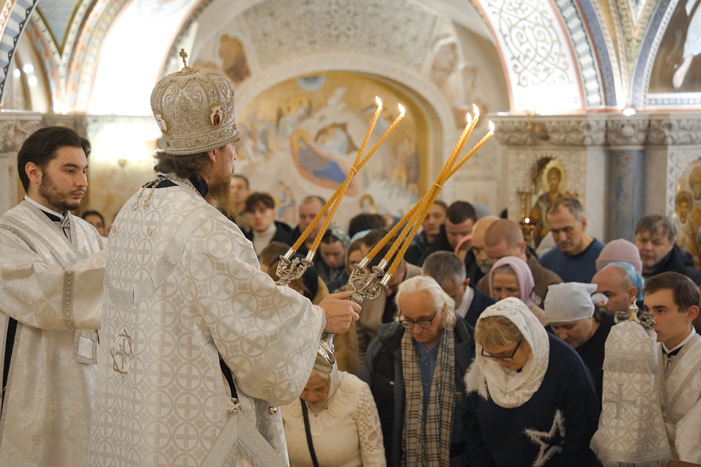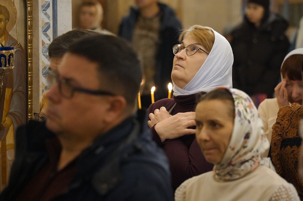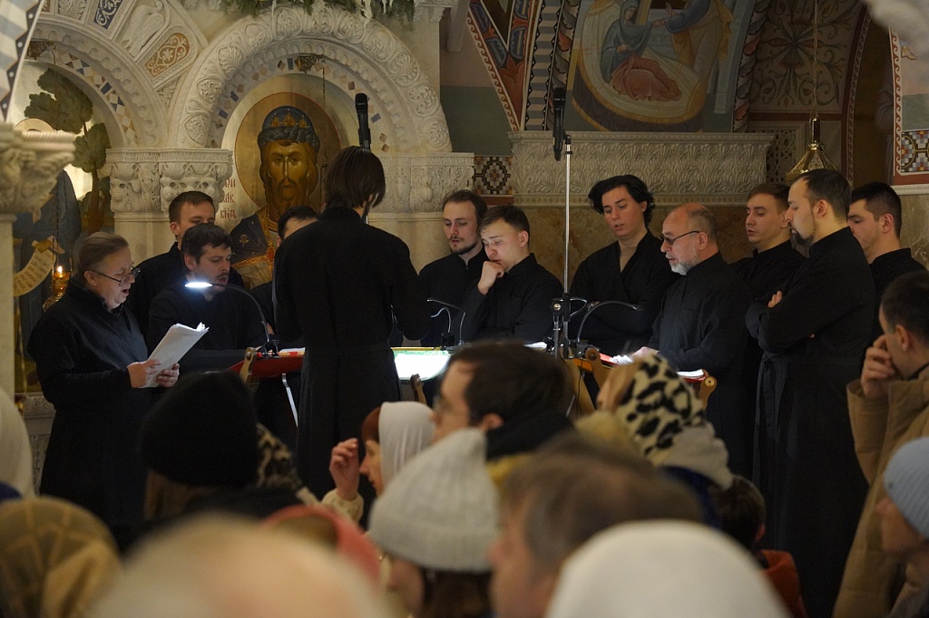 На службе был прочитан отрывок из Евангелия от Матфея (Мф.3:13-17), в котором говорится о том, как Иисус Христос пришел на Иордан к Иоанну – креститься от него. Пророк видит в Иисусе Бога и говорит: «Мне надобно креститься от Тебя». Но Господь отвечает, что «так надлежит нам исполнить всякую правду». После крещения Иисуса Иоанн увидел открывшееся небо, Духа Божия, который в виде голубя спускается с небес на Спасителя. С неба звучит голос Бога Отца: «Сей есть Сын Мой возлюбленный, в Котором Мое благоволение».