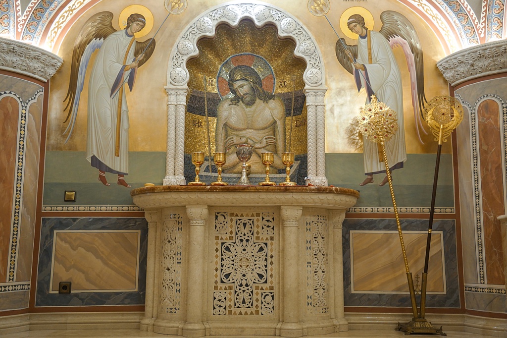 Для нижнего храма кафедрального собора Рождества Христова праздник Святого Богоявления является одним из важнейших. Он задумывался, как крестильный. В центре расположена купель для крещения с полным погружением. Таинство для взрослых и детей активно проводится в храме с момента его открытия. Тема водной стихии присутствует в росписи сводов, а в иконостасе есть икона святого Иоанна Крестителя и образ Крещения Господня.