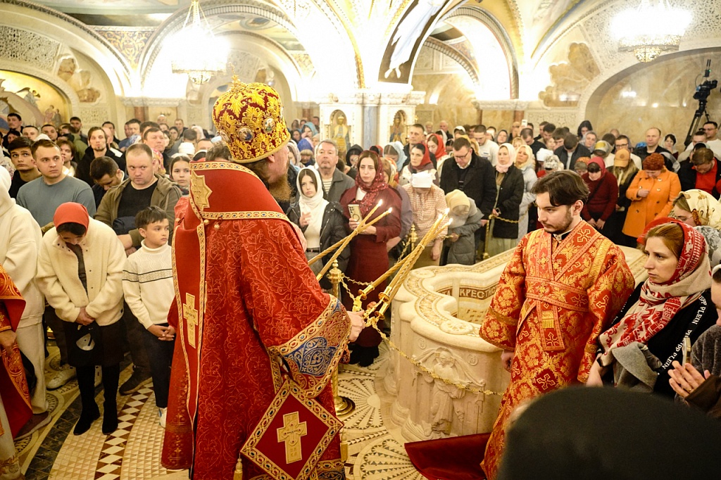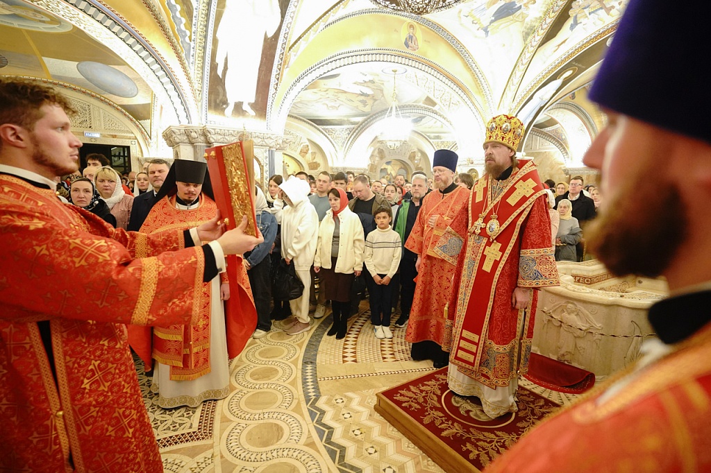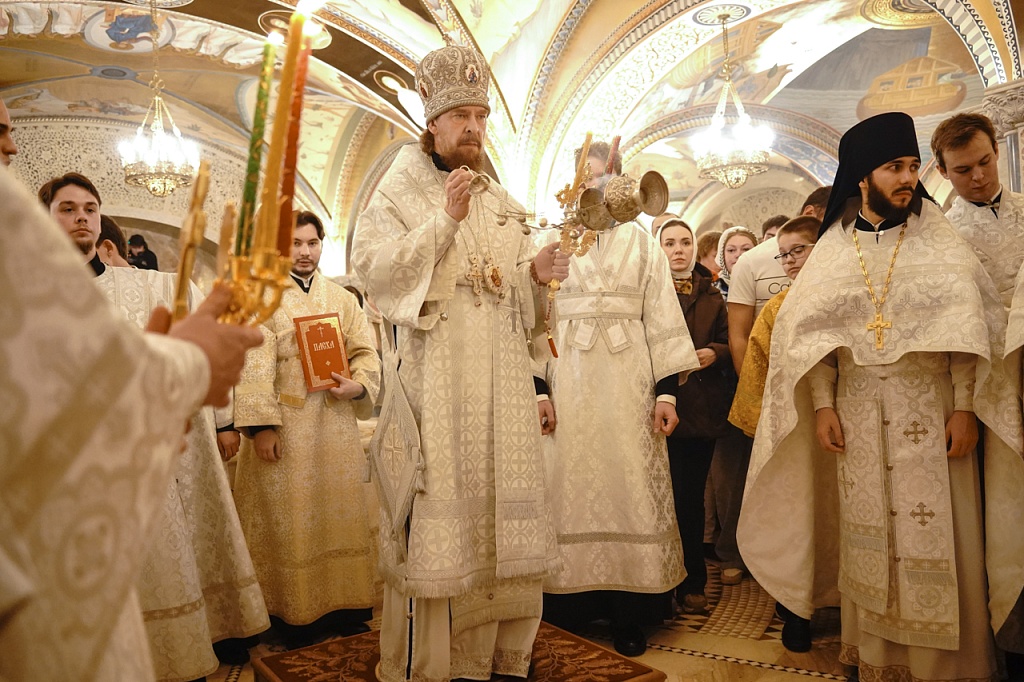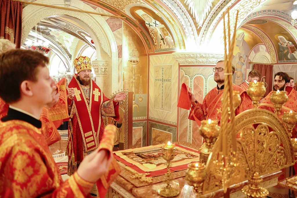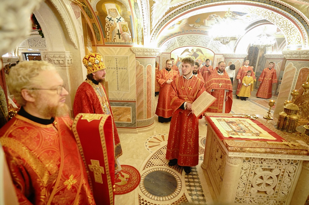 Правящему архиерею сослужили секретарь Челябинской епархии протоиерей Игорь Шестаков и духовенство собора. Песнопения службы исполнил Архиерейский мужской хор под управлением регента Александра Хакимова.