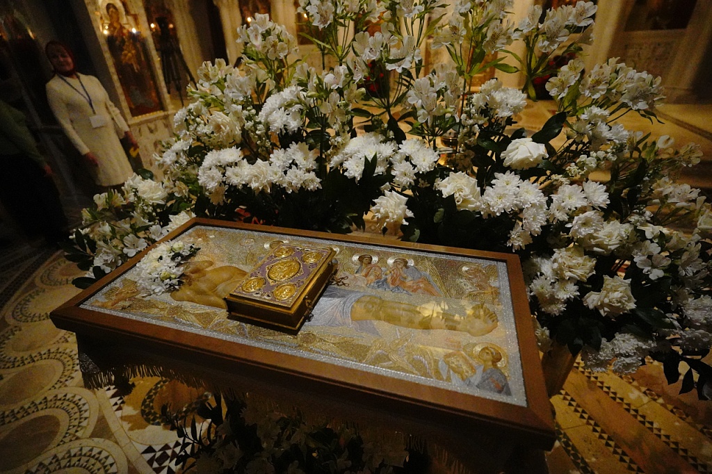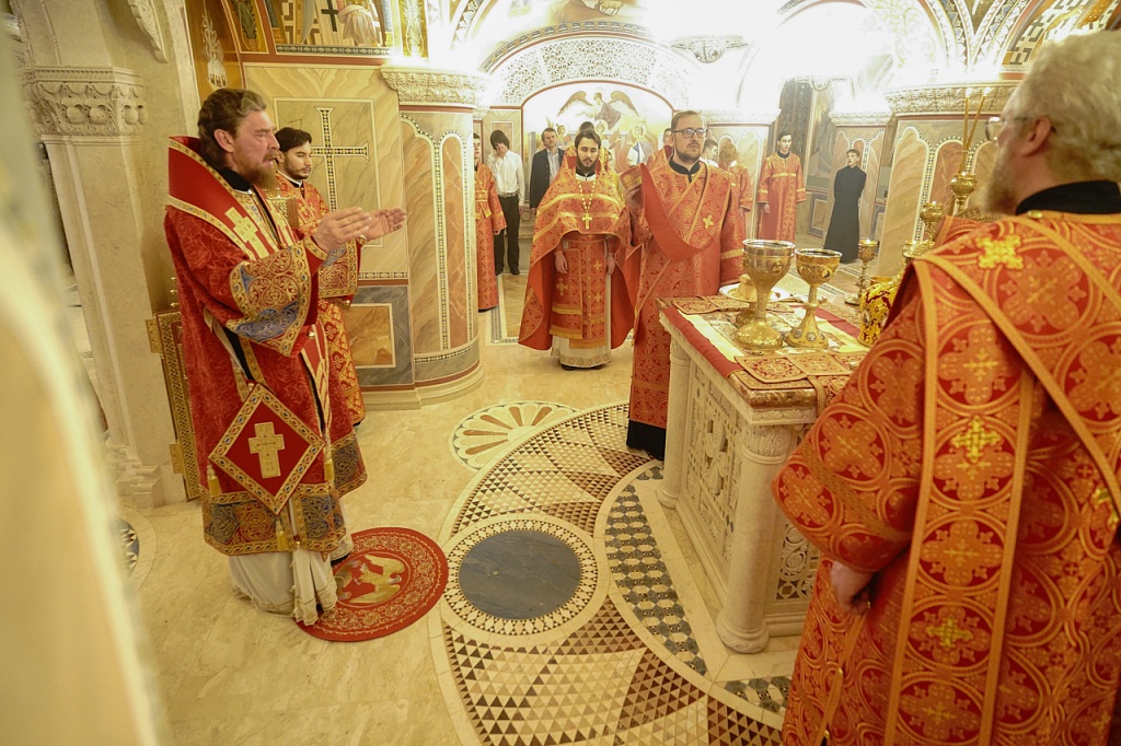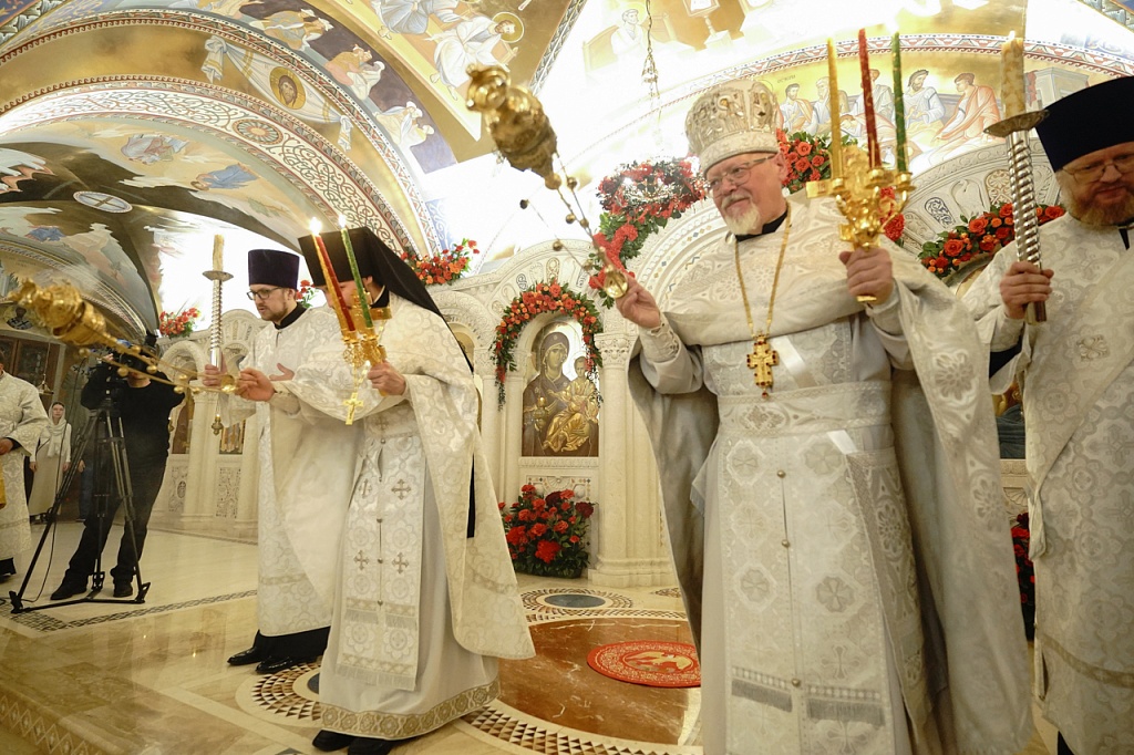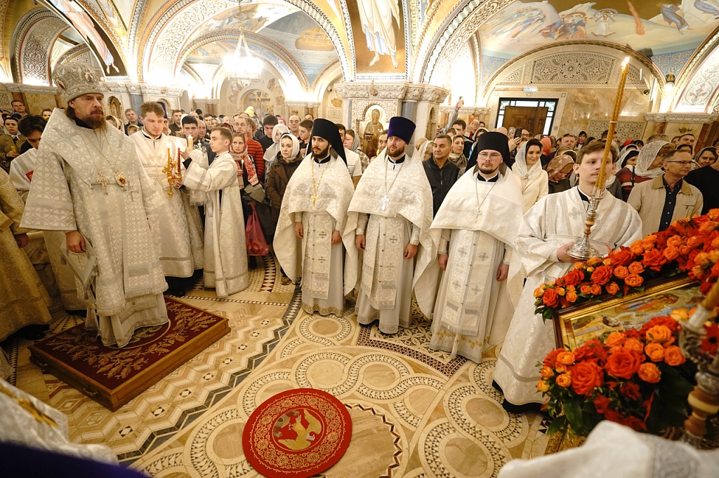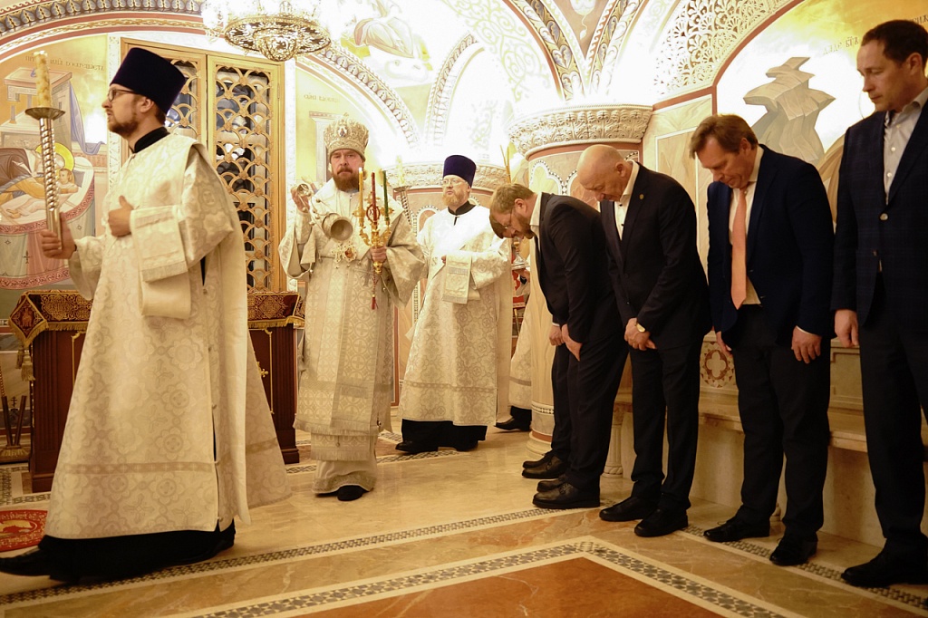 Правящему архиерею сослужили секретарь Челябинской епархии протоиерей Игорь Шестаков и духовенство собора. Песнопения службы исполнил Архиерейский мужской хор под управлением регента Александра Хакимова.