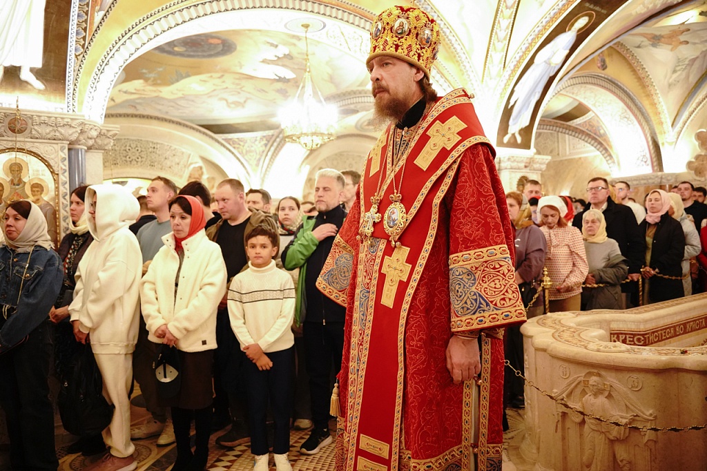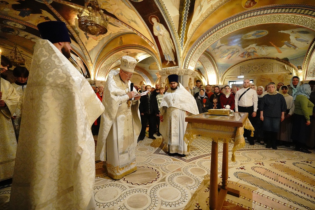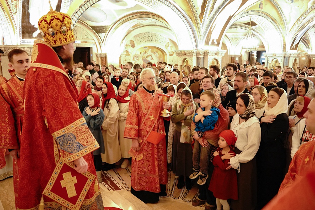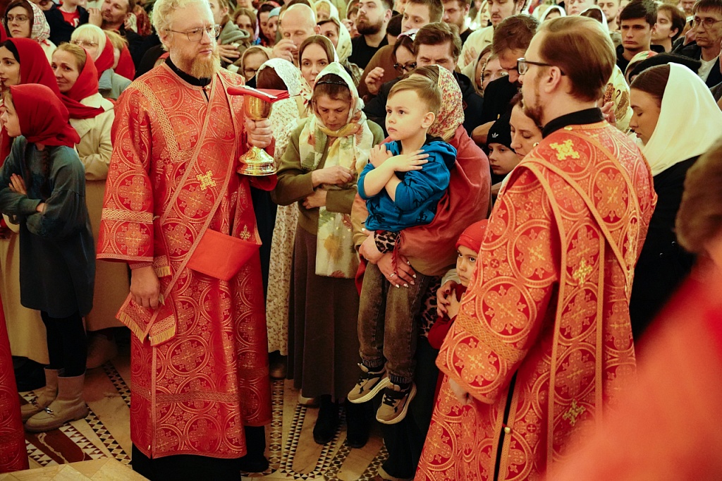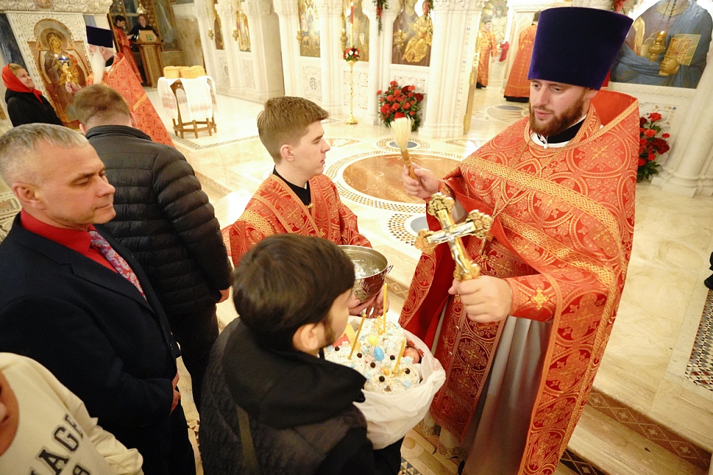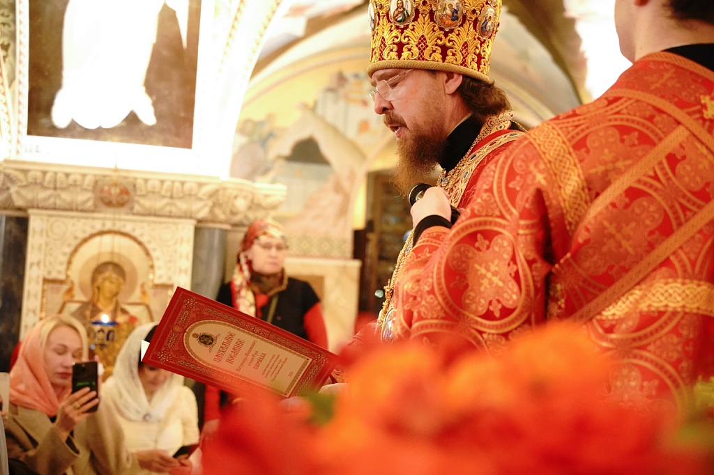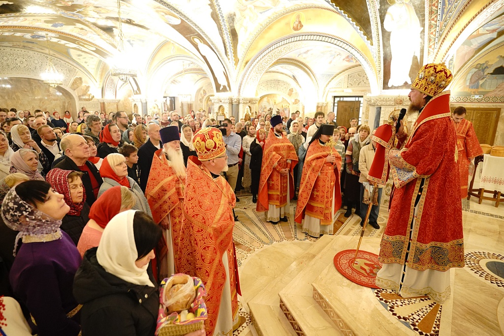 Митрополит Алексий зачитал Пасхальное послание Патриарха Московского и всея Руси Кирилла. Перед причащением верующих протоиерей Игорь Шестаков зачитал Пасхальное послание правящего архиерея.