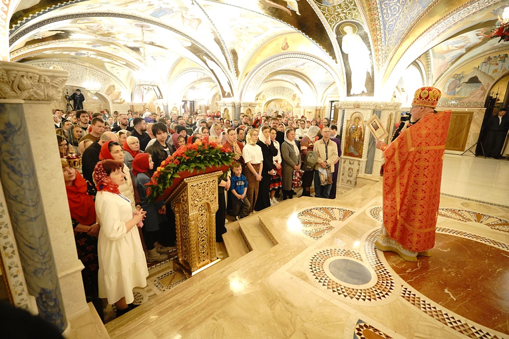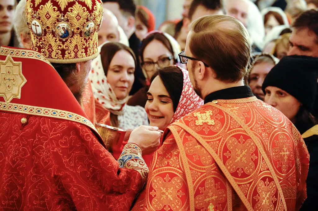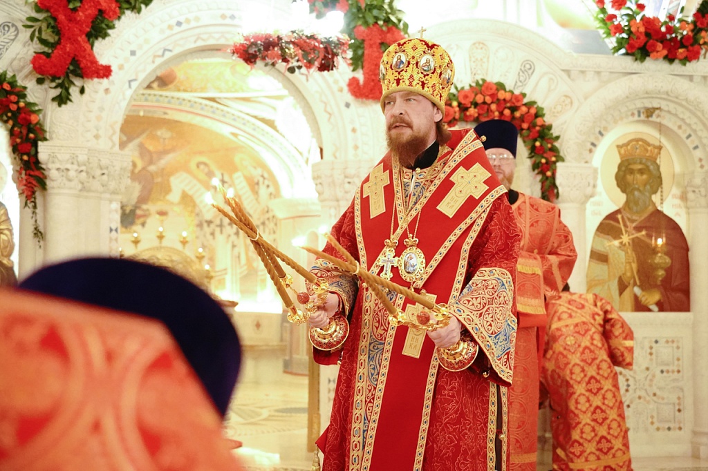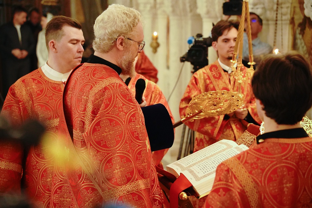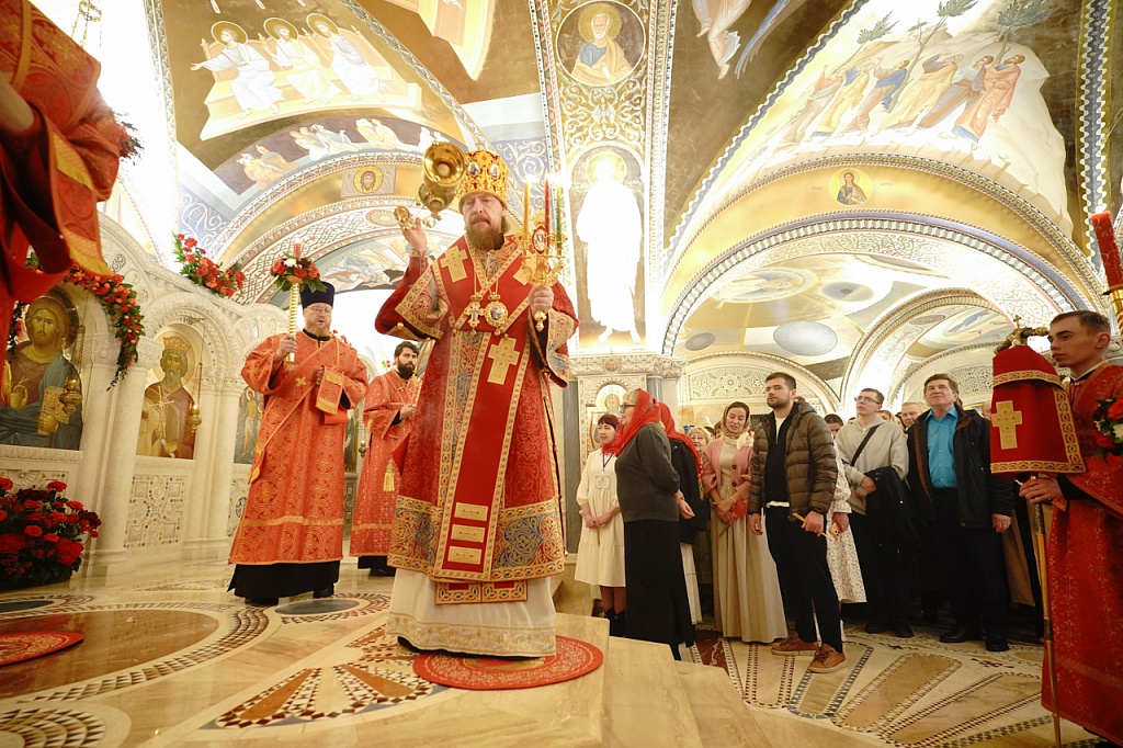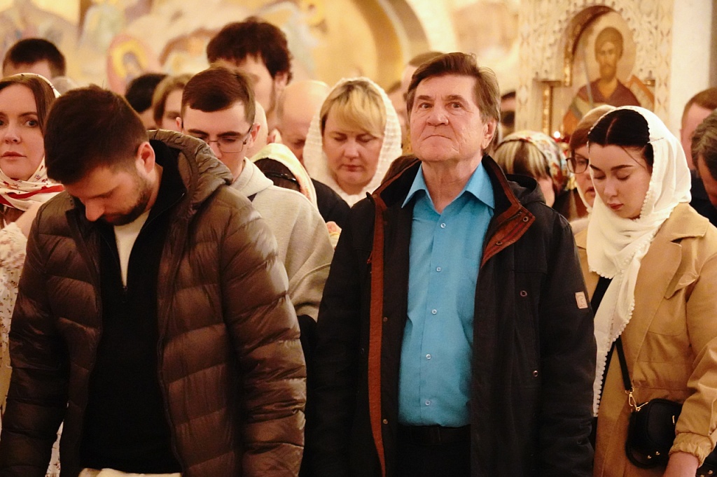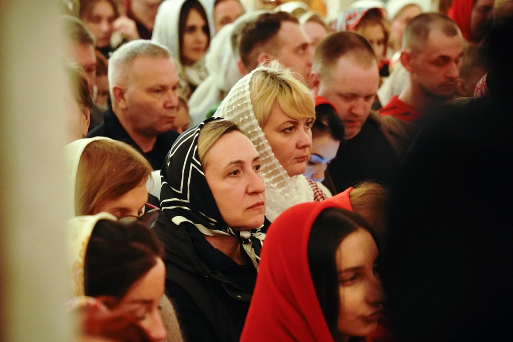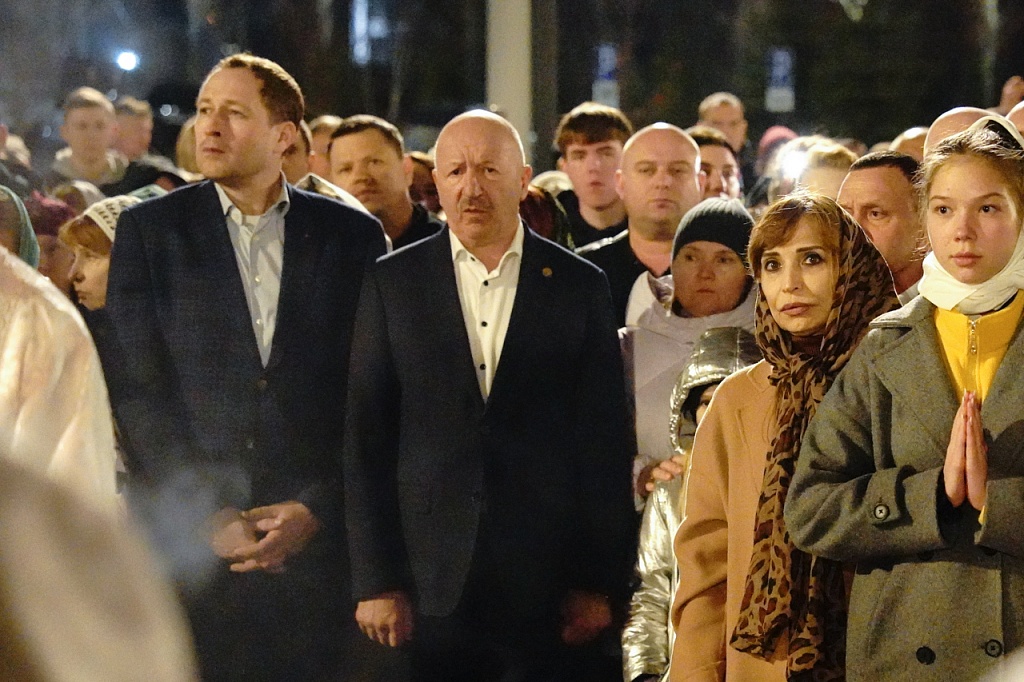 Митрополит Алексий зачитал Пасхальное послание Патриарха Московского и всея Руси Кирилла. Перед причащением верующих протоиерей Игорь Шестаков зачитал Пасхальное послание правящего архиерея.