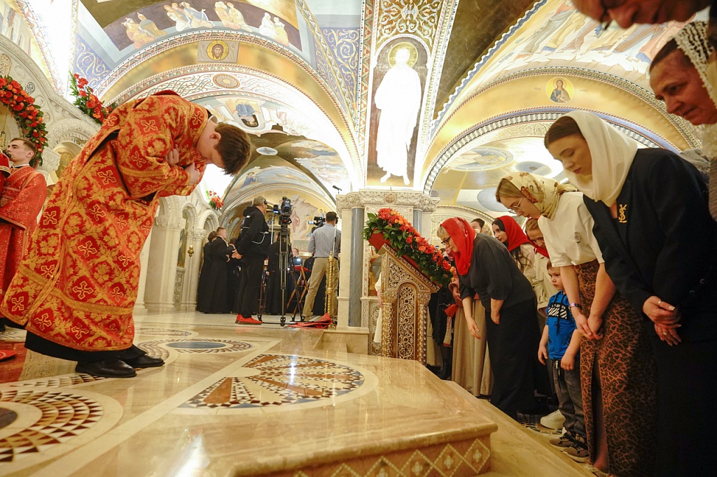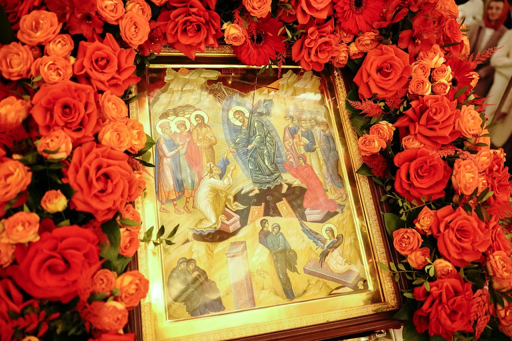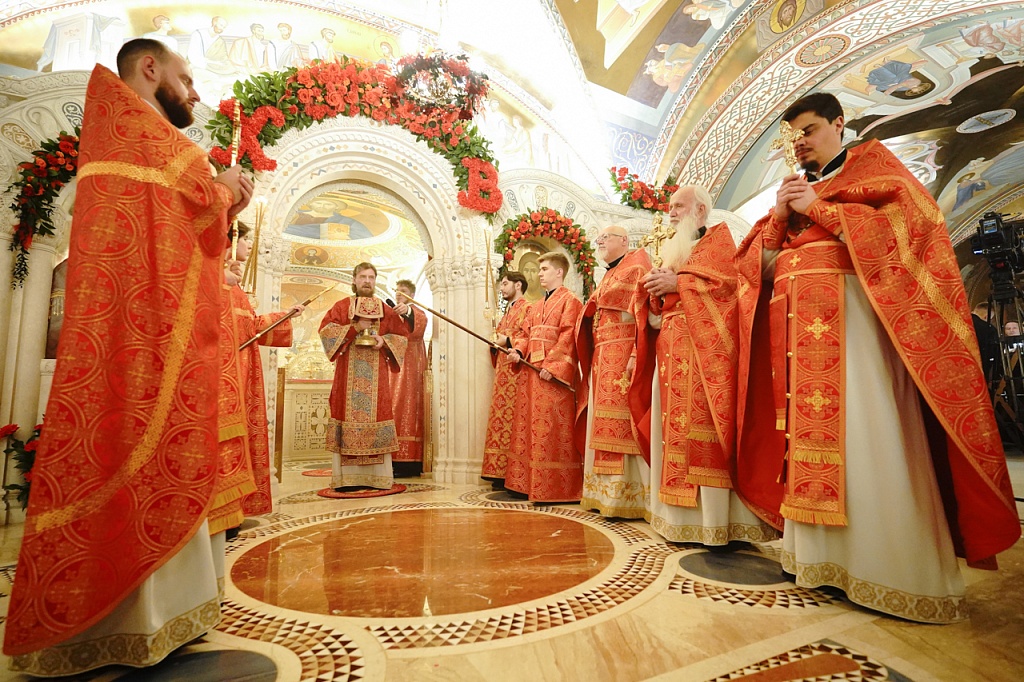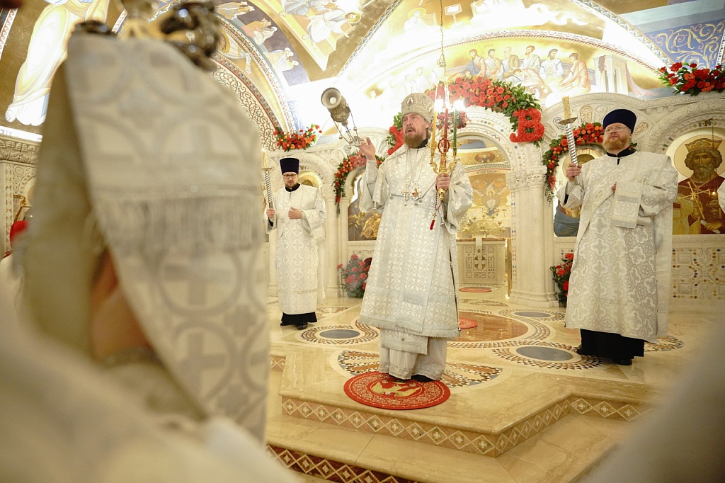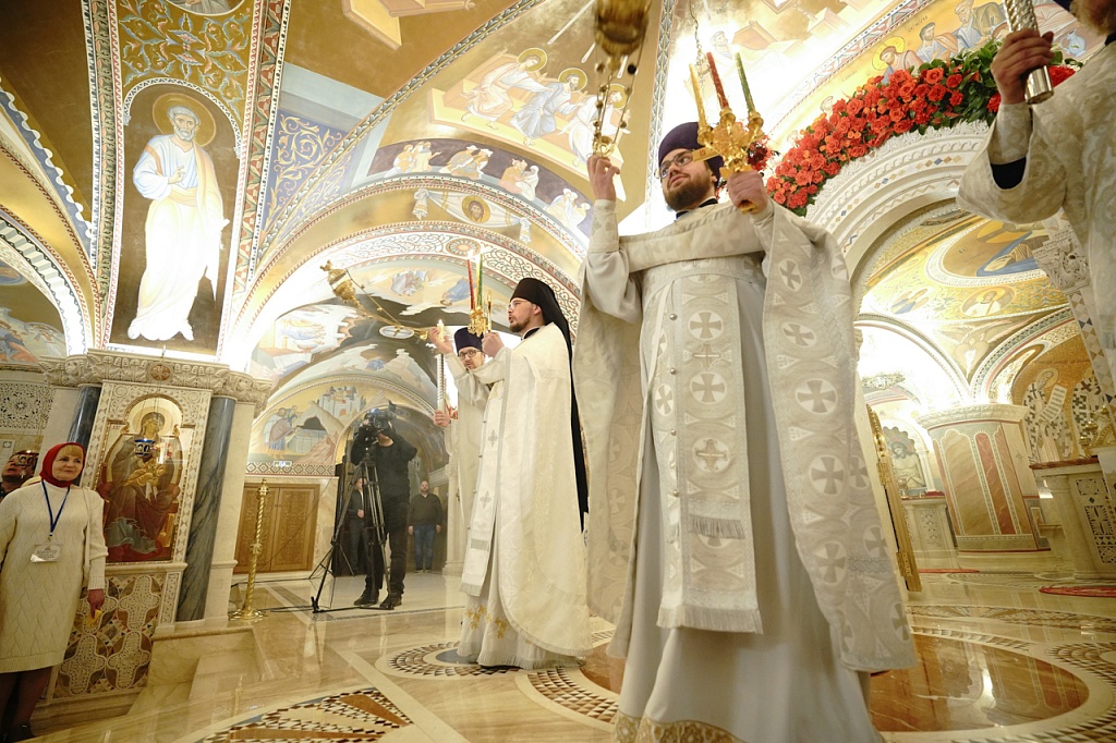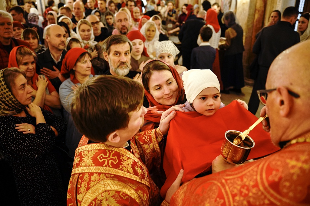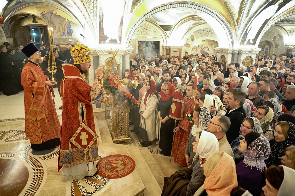 Митрополит Алексий зачитал Пасхальное послание Патриарха Московского и всея Руси Кирилла. Перед причащением верующих протоиерей Игорь Шестаков зачитал Пасхальное послание правящего архиерея.