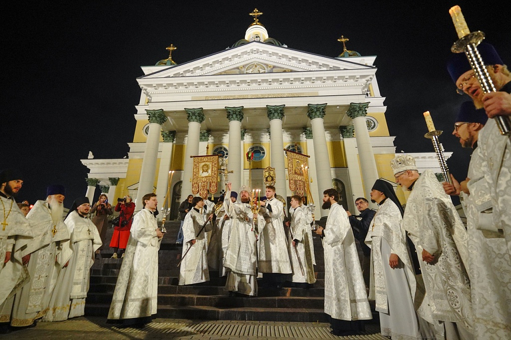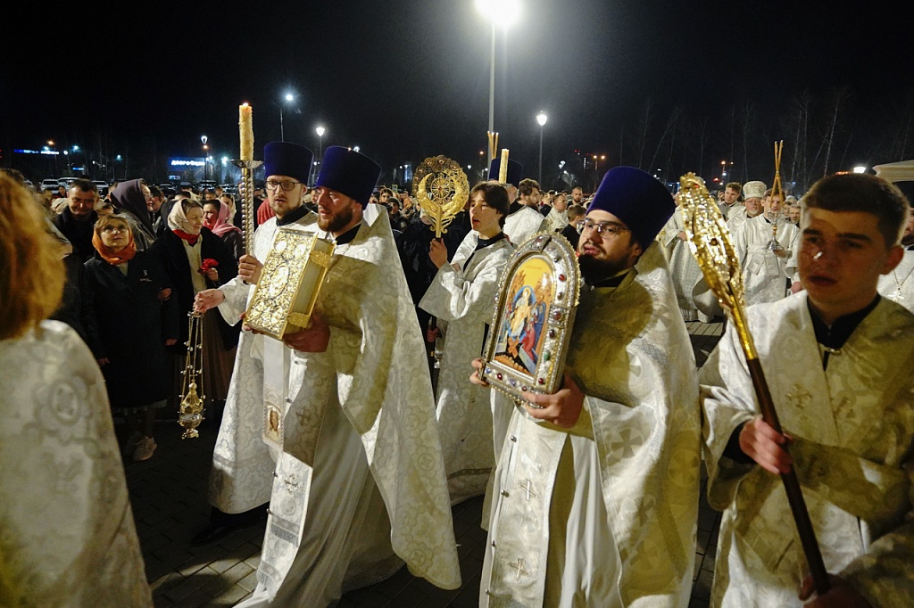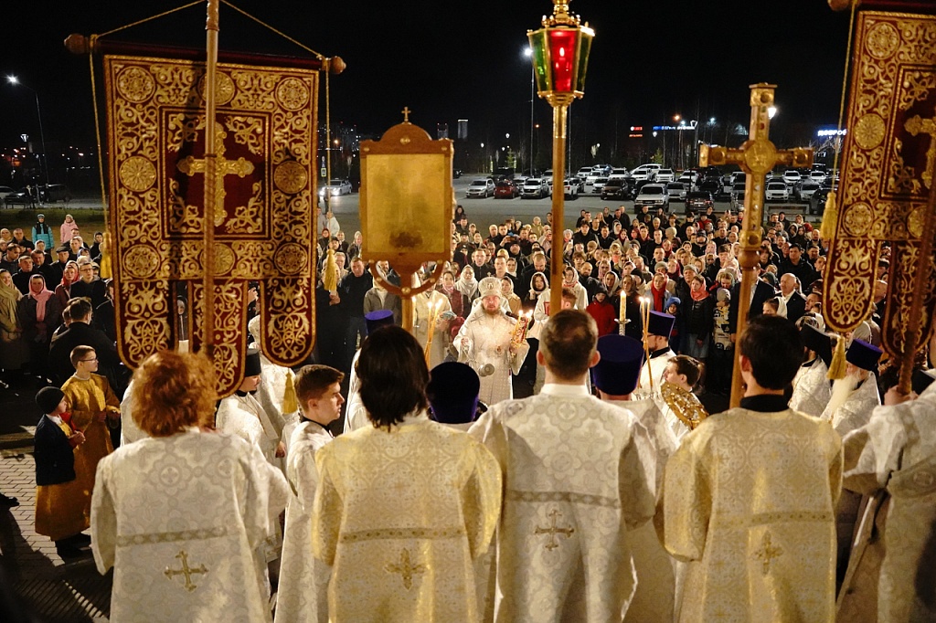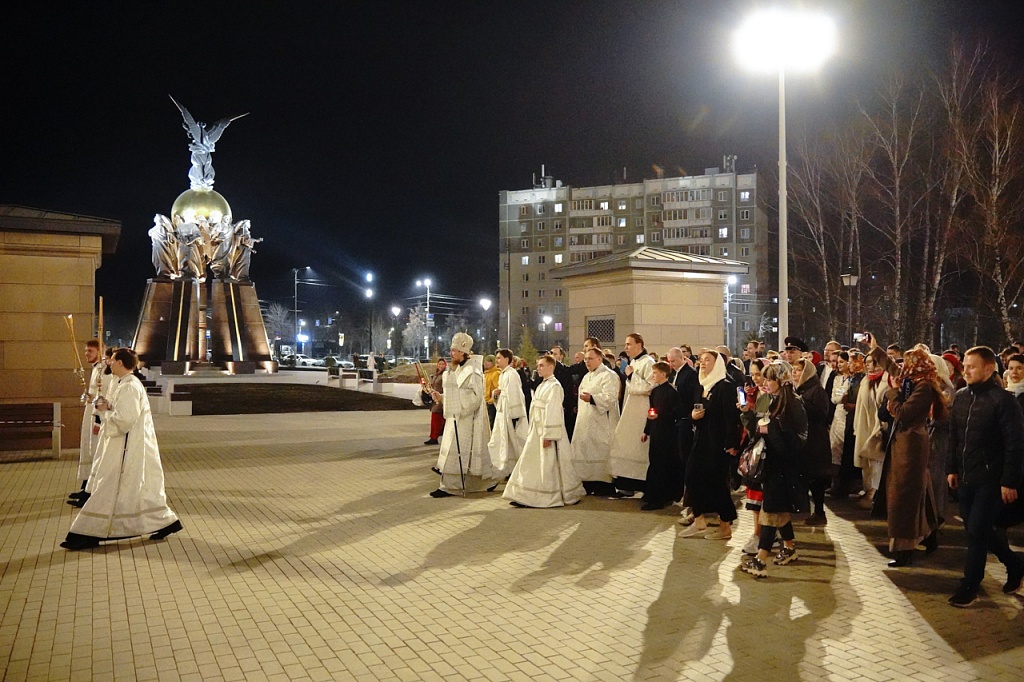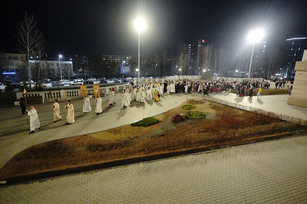После этого крестным ходом митрополит Алексий, духовенство и горожане обошли собор с пением стихиры «Воскресение Твое, Христе Спасе, Ангели поют на небесех». Возле главного входа в собор челябинцы услышали первые Пасхальные приветствия: «Христос Воскресе!»