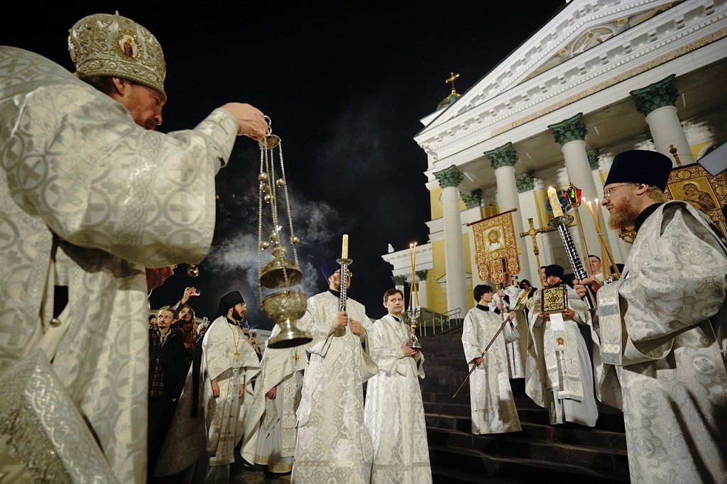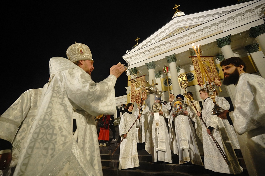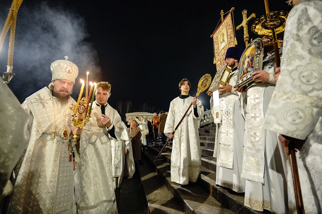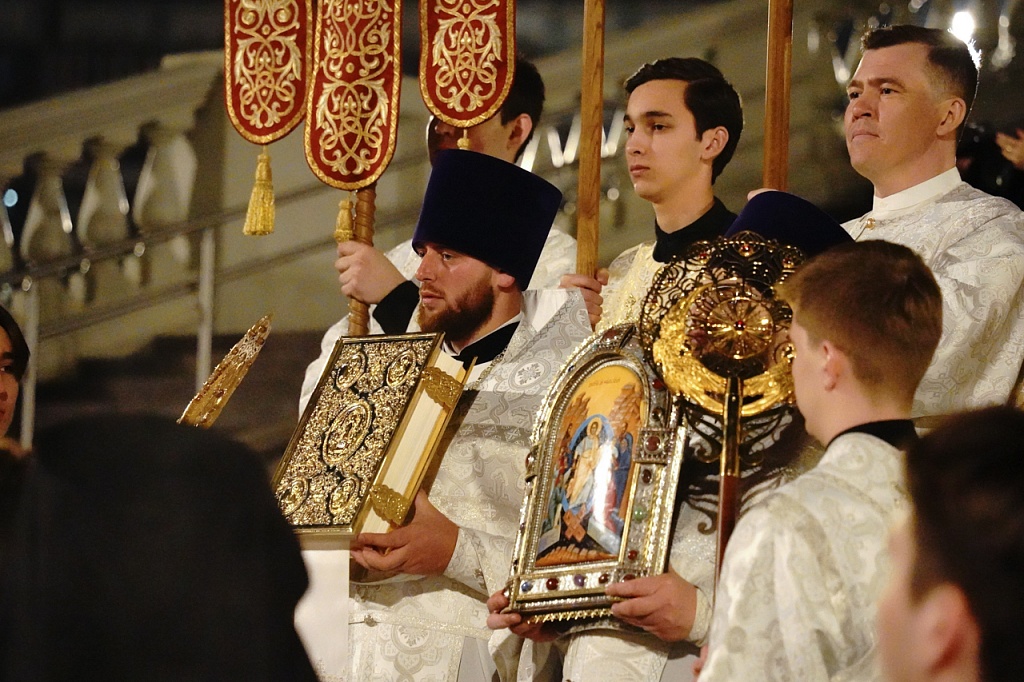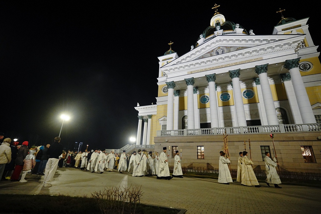 После этого крестным ходом митрополит Алексий, духовенство и горожане обошли собор с пением стихиры «Воскресение Твое, Христе Спасе, Ангели поют на небесех». Возле главного входа в собор челябинцы услышали первые Пасхальные приветствия: «Христос Воскресе!»
