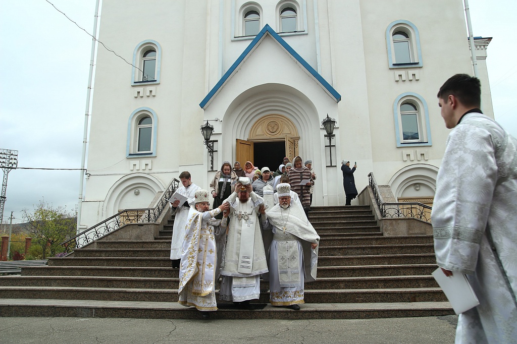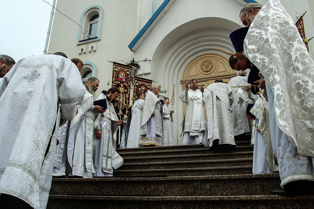 Освящение завершилось крестным ходом вокруг храма. Затем в храме состоялась Божественная литургия.