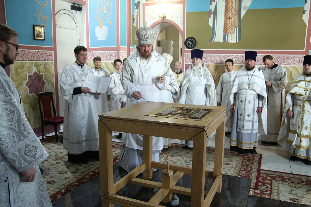12 октября митрополит Челябинский и Миасский Алексий совершил чин освящения обновленного престола в Богоявленском храме Миасса. Архипастырю сослужили секретарь Челябинской епархии протоиерей Игорь Шестаков, благочинный Миасского округа протоиерей Георгий Крецу, настоятель храма протоиерей Игорь Рысенко и другие клирики.