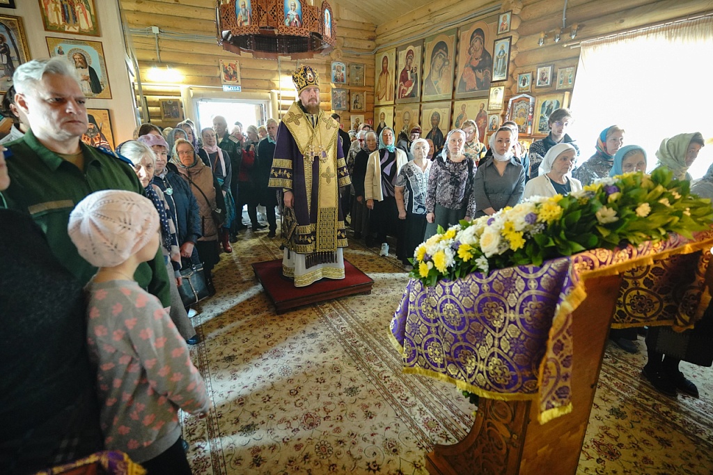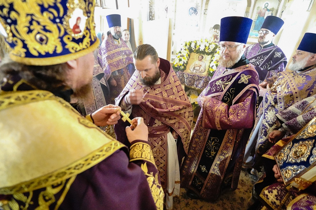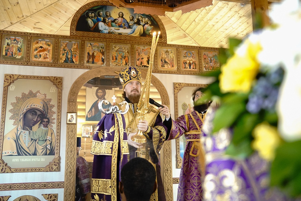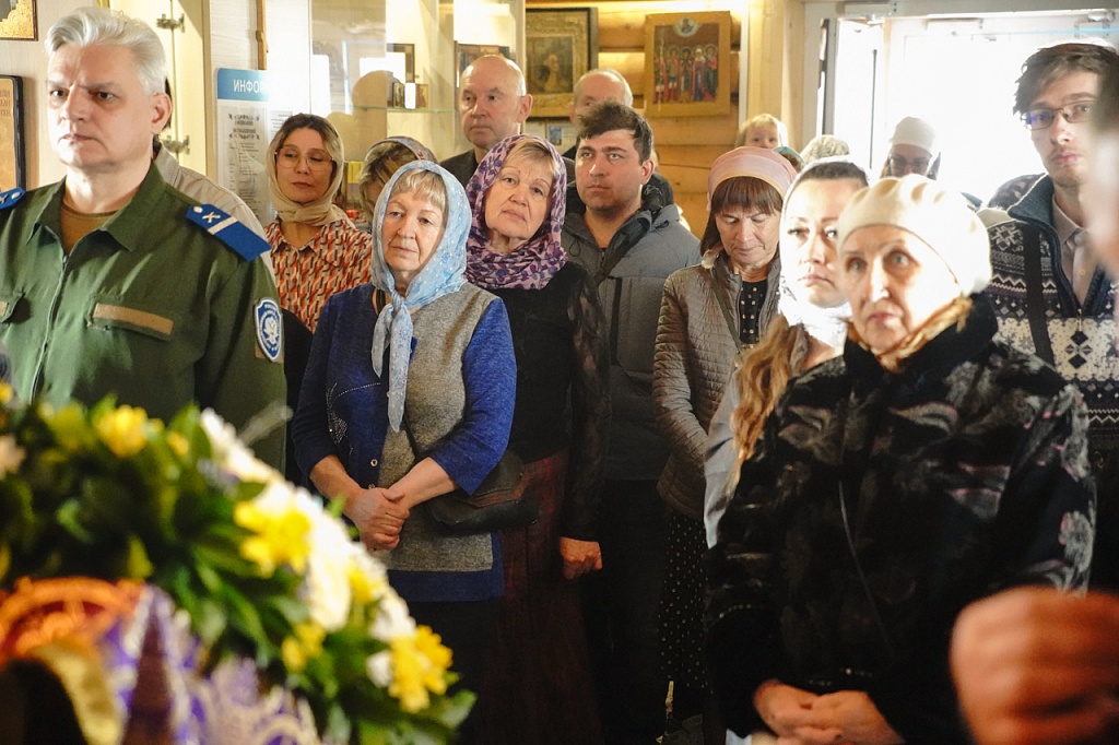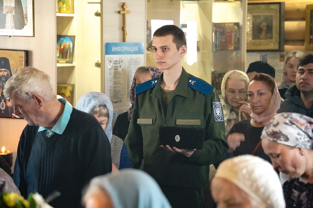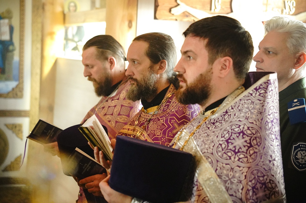 Правящему архиерею сослужили благочинный Южного благочиния протоиерей Алексий Бобылев, настоятель храма иерей Стефан Кокшаров и клирики Южного благочиния. Песнопения службы исполнил Архиерейский квартет под управлением регента Марины Гоман. За богослужением молился глава Челябинска Алексей Лошкин.