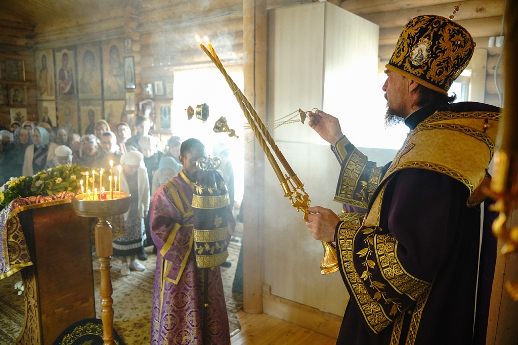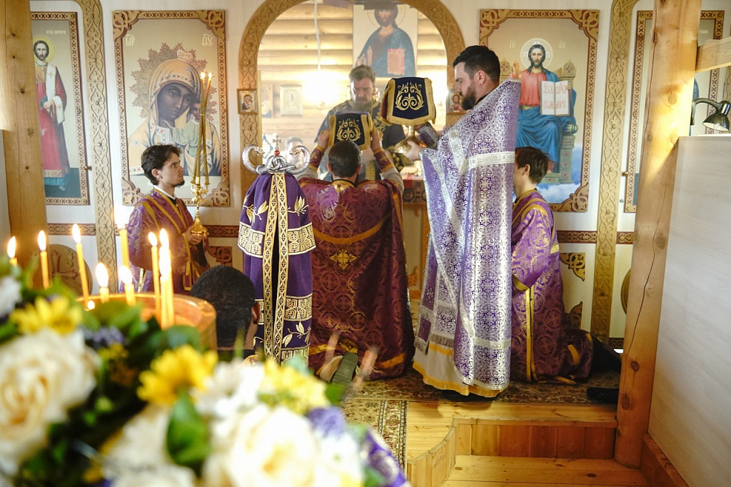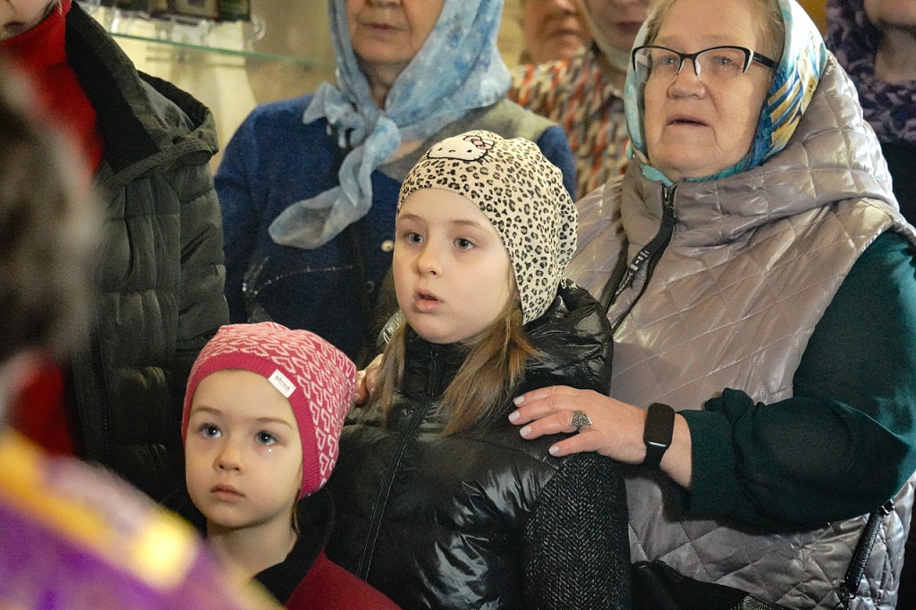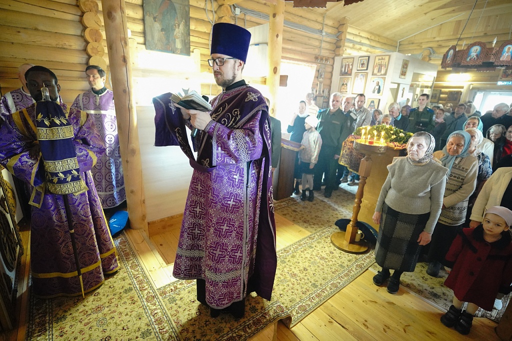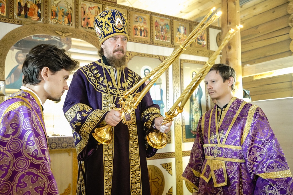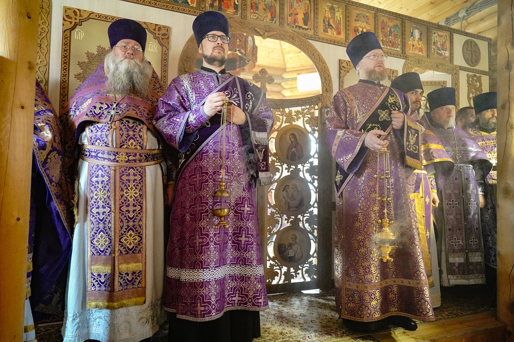 Правящему архиерею сослужили благочинный Южного благочиния протоиерей Алексий Бобылев, настоятель храма иерей Стефан Кокшаров и клирики Южного благочиния. Песнопения службы исполнил Архиерейский квартет под управлением регента Марины Гоман. За богослужением молился глава Челябинска Алексей Лошкин.