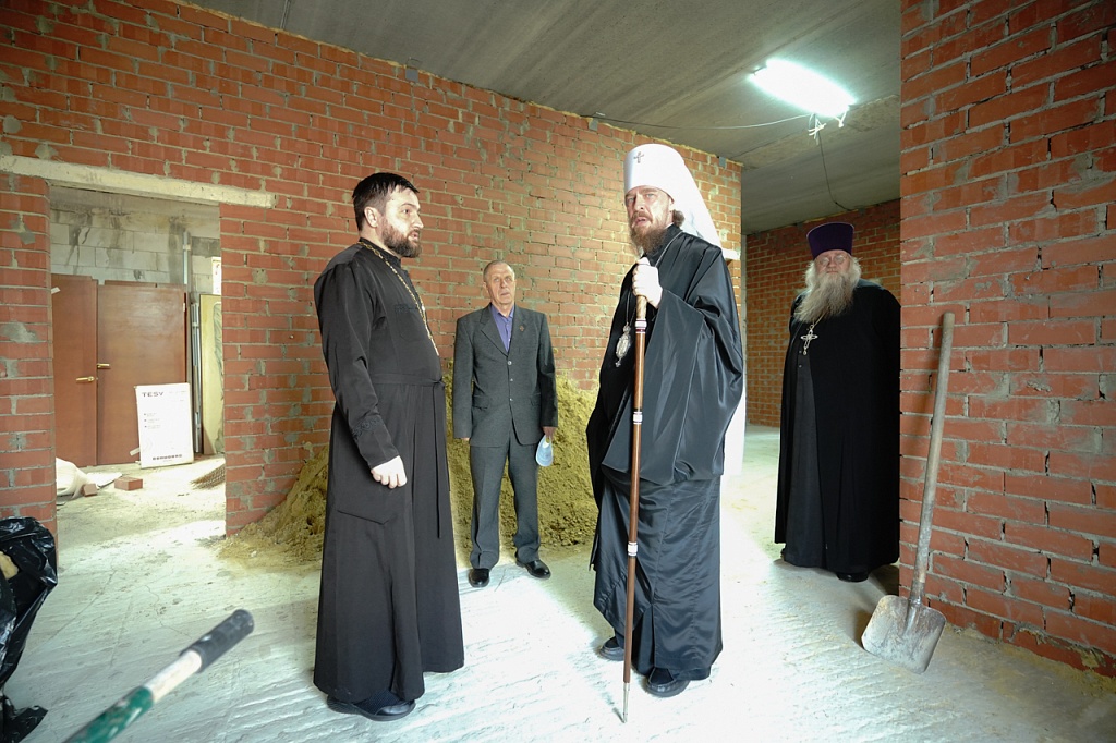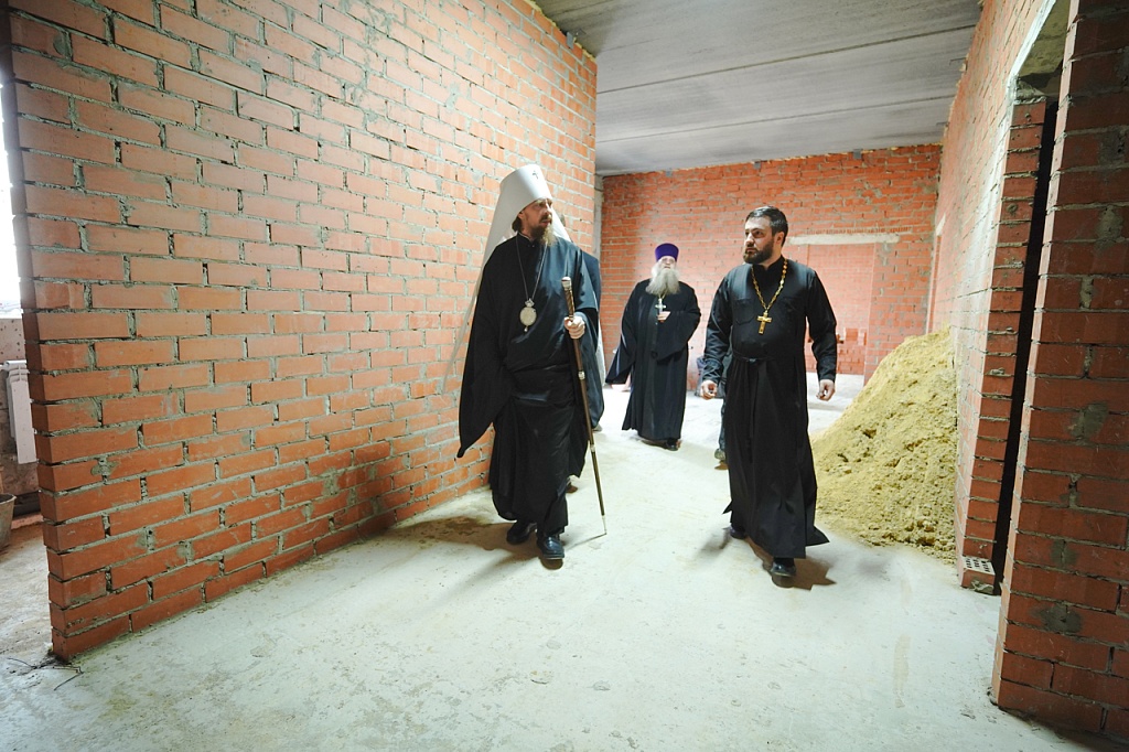 После службы митрополит Алексий осмотрел здание духовно-просветительского центра, который приход возводит на территории храма с июня 2025 года. Здесь разместится воскресная школа, трапезная, библиотека, помещение для библейского клуба.