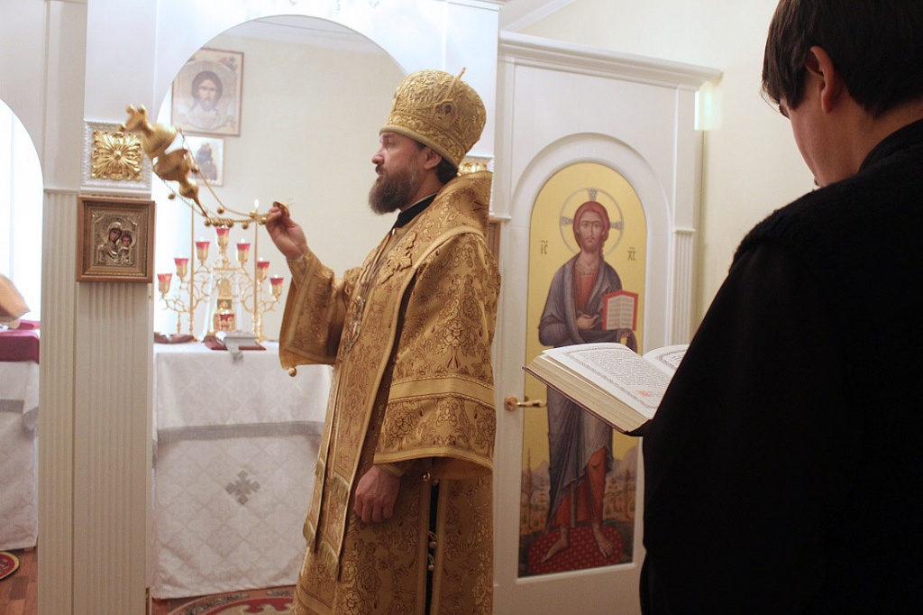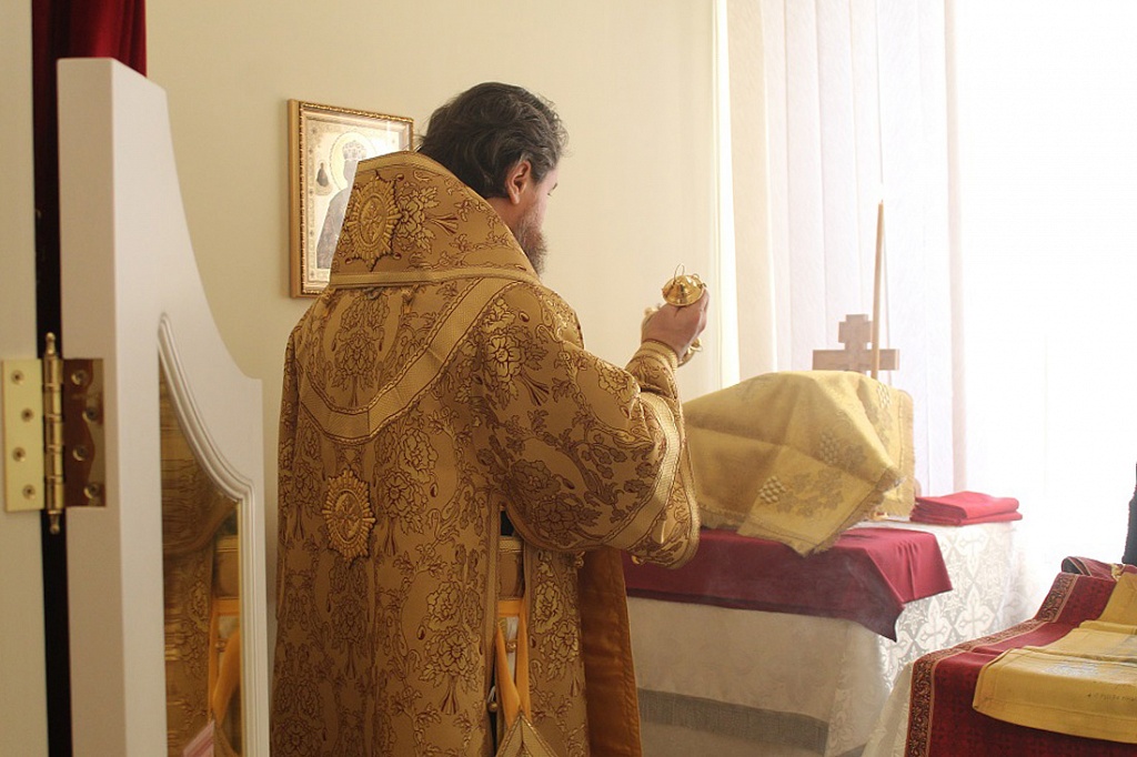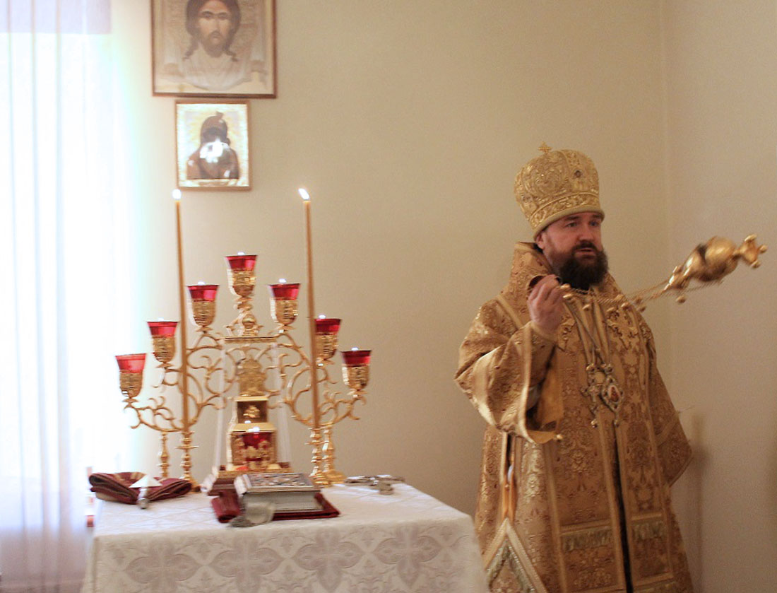 За богослужением владыка Григорий вознес молитвы о прекращении распространения коронавирусной инфекции.