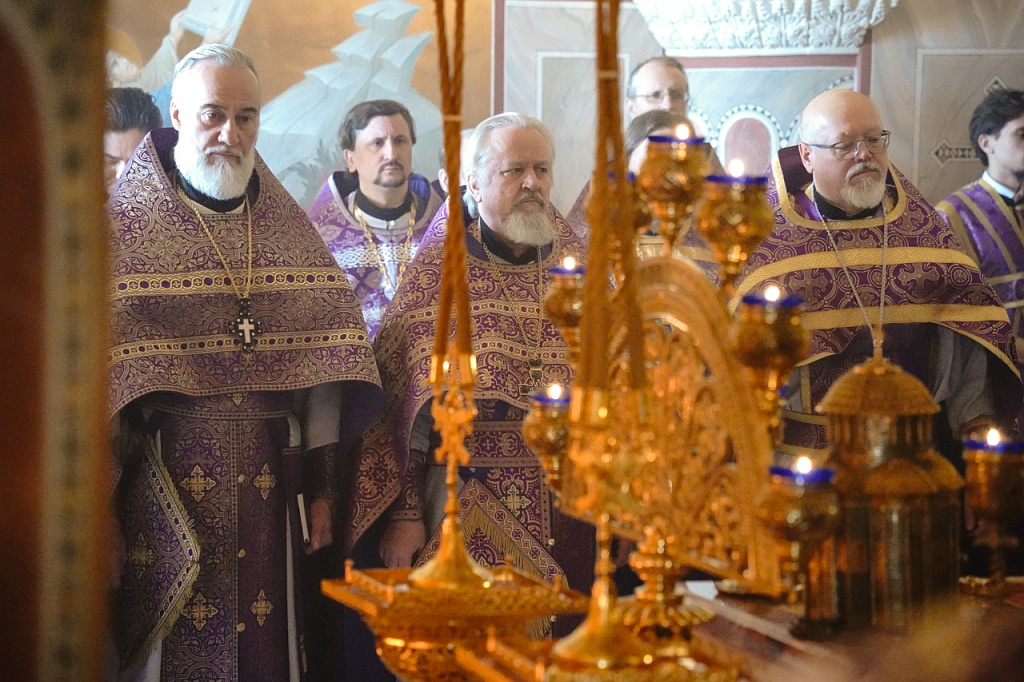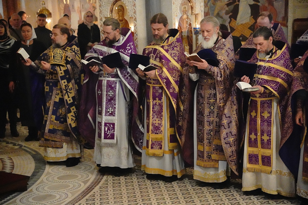 В пятницу 4-й седмицы Великого поста митрополит Ташкентский и Узбекистанский Викентий, митрополит Челябинский и Миасский Алексий и епископ Орский и Гайский Ириней возглавили Литургию Преждеосвященных Даров в соборе Рождества Христова.