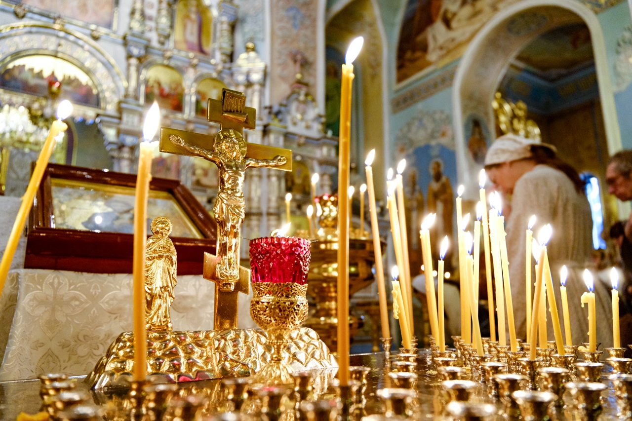 Можно принести продукты (фрукты, выпечку, сладости) на канун (специальный панихидный столик), но если пришли без приношений — это не страшно. Главное — молитва.