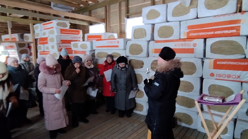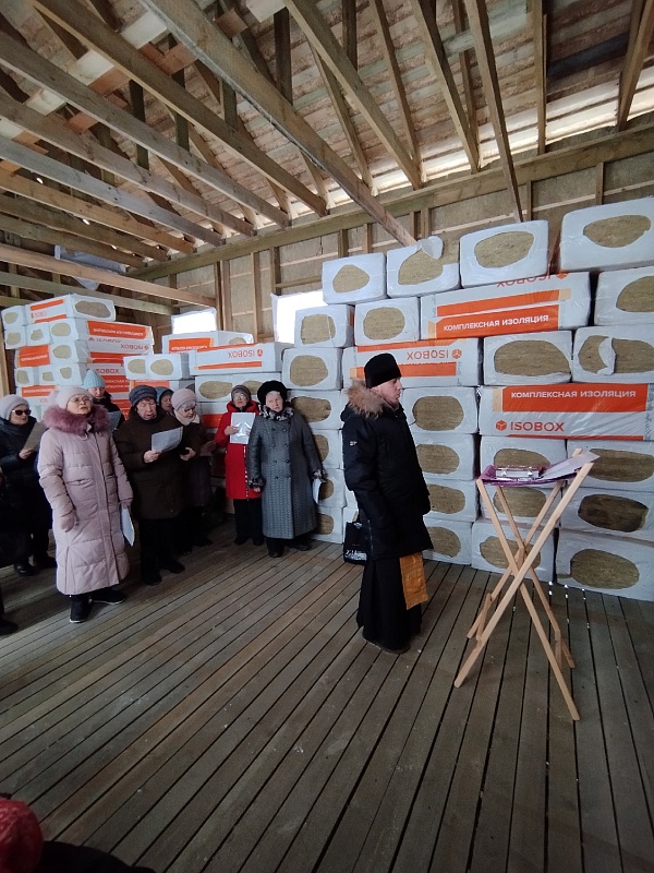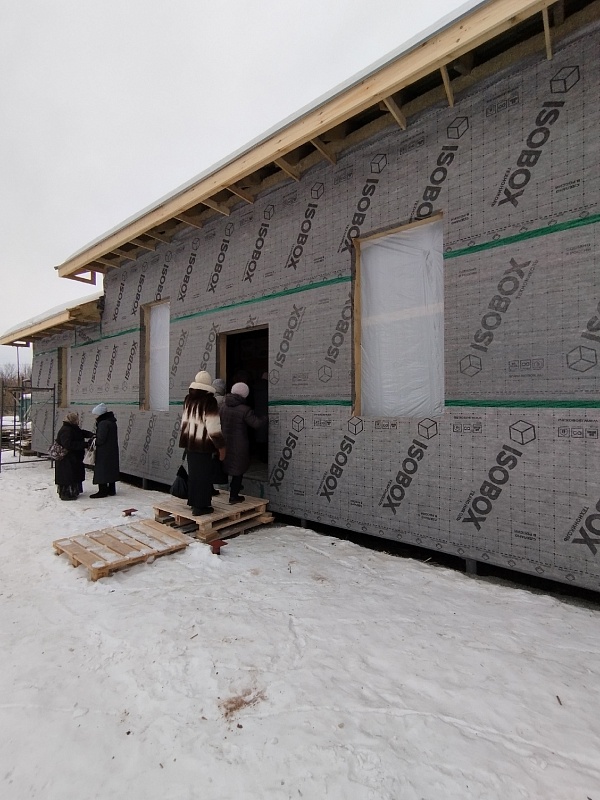 Работы на объекте продолжаются. Храм полностью обшит снаружи утеплителем, началось внутреннее утепление. В ближайшее время планируется установка окон.