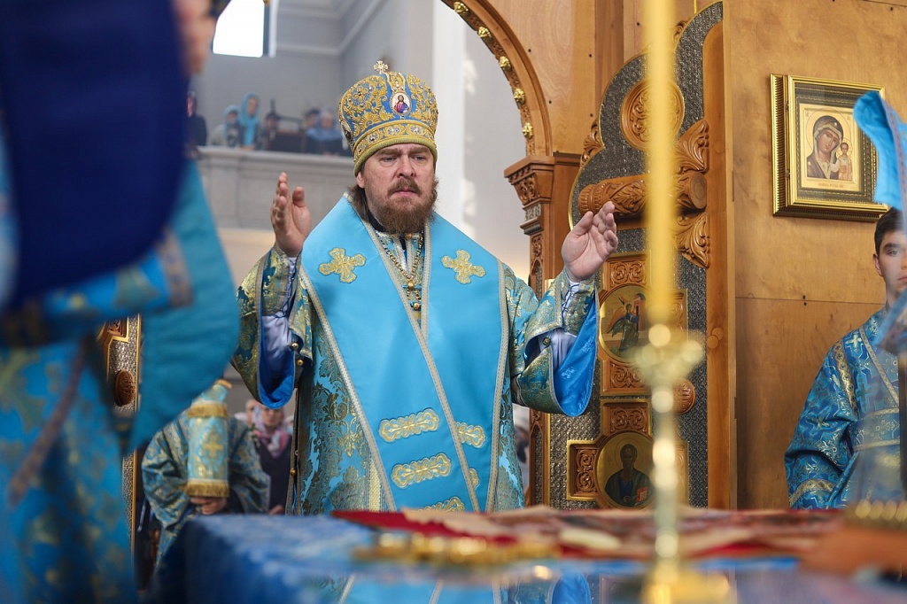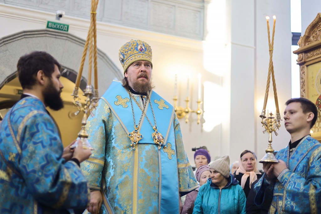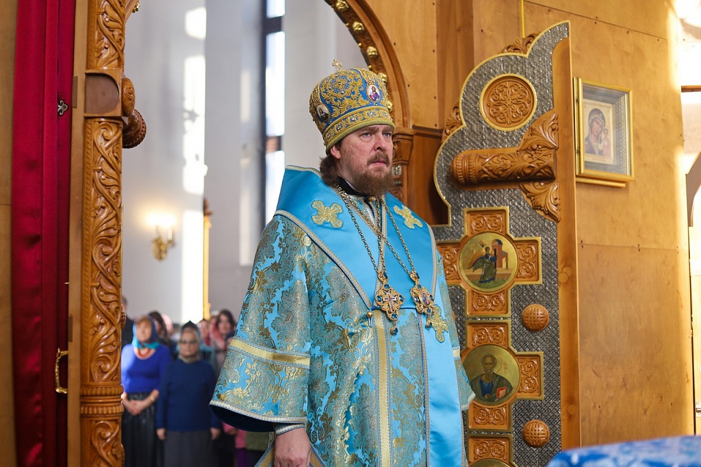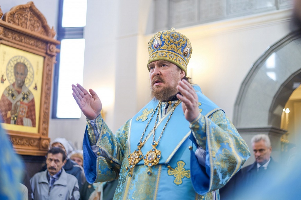 В праздничной проповеди владыка напомнил прихожанам историю праздника. В X веке на Константинополь напали варвары. Люди собрались в храме на молитву. Во время всенощного бдения блаженному Андрею явилась Пресвятая Дева, которая распростерла свой омофор над богомольцами и просила своего Божественного Сына помиловать осажденный город.