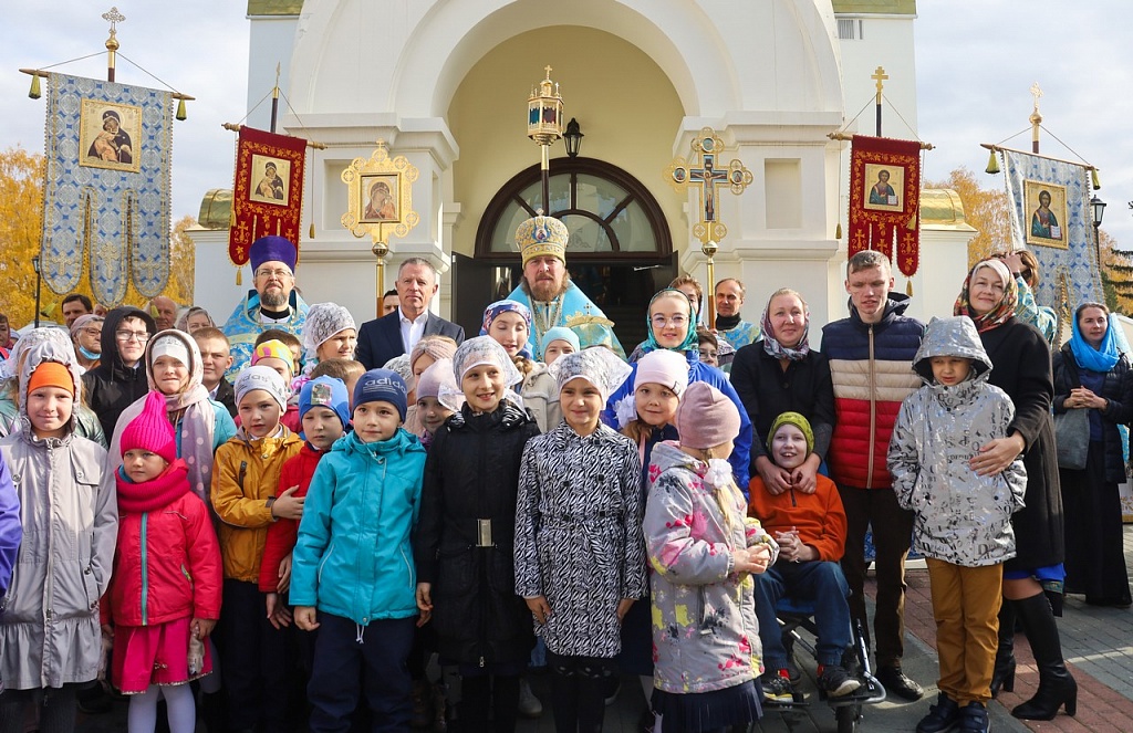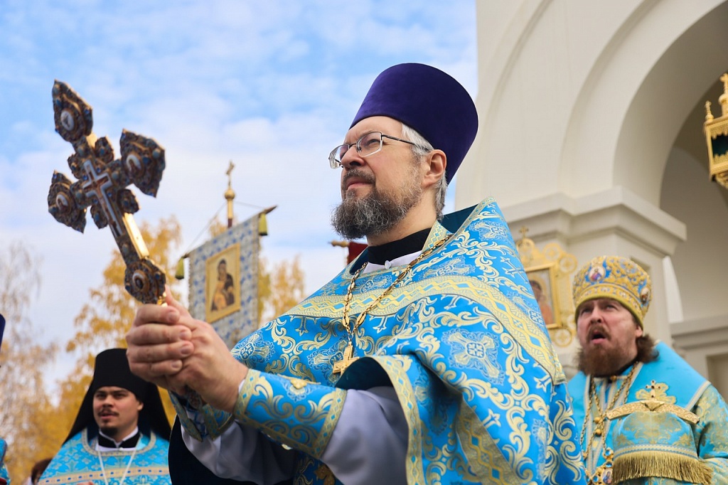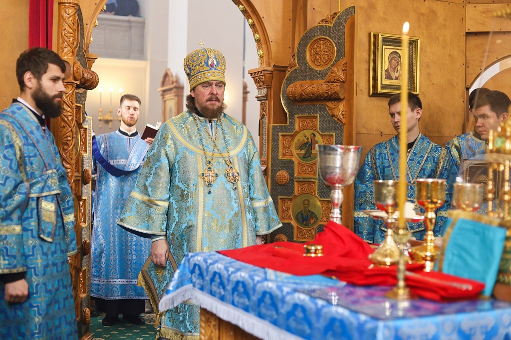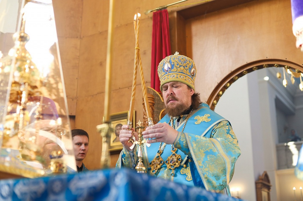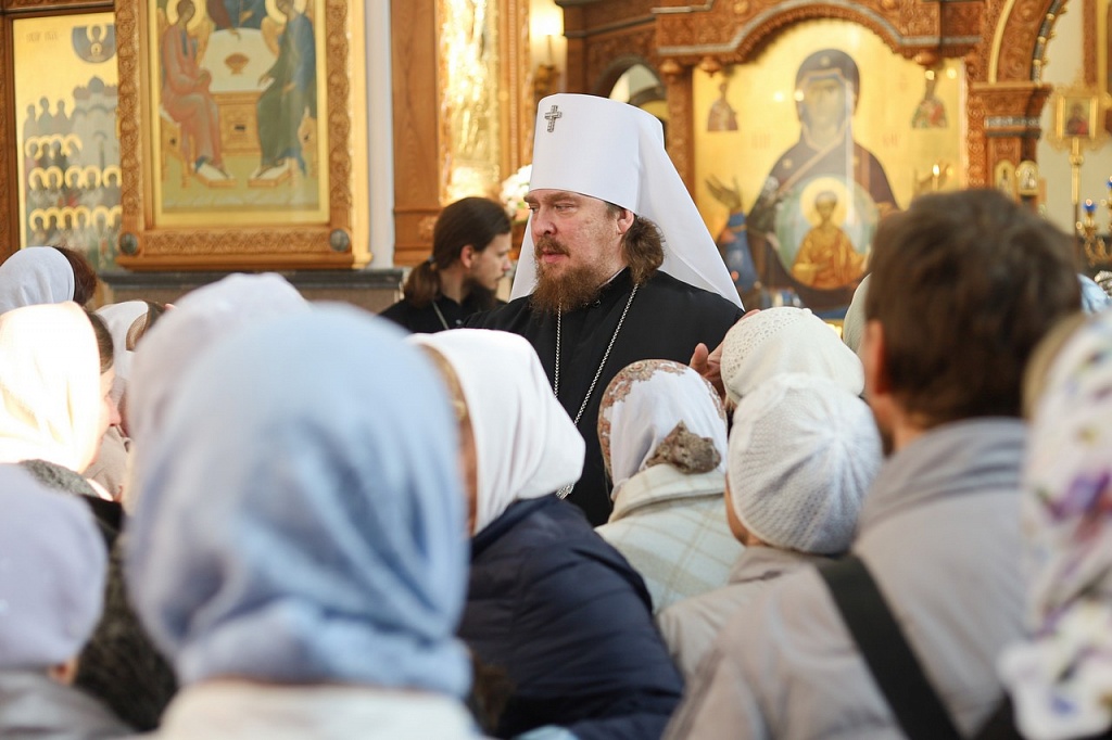 В праздничной проповеди владыка напомнил прихожанам историю праздника. В X веке на Константинополь напали варвары. Люди собрались в храме на молитву. Во время всенощного бдения блаженному Андрею явилась Пресвятая Дева, которая распростерла свой омофор над богомольцами и просила своего Божественного Сына помиловать осажденный город.