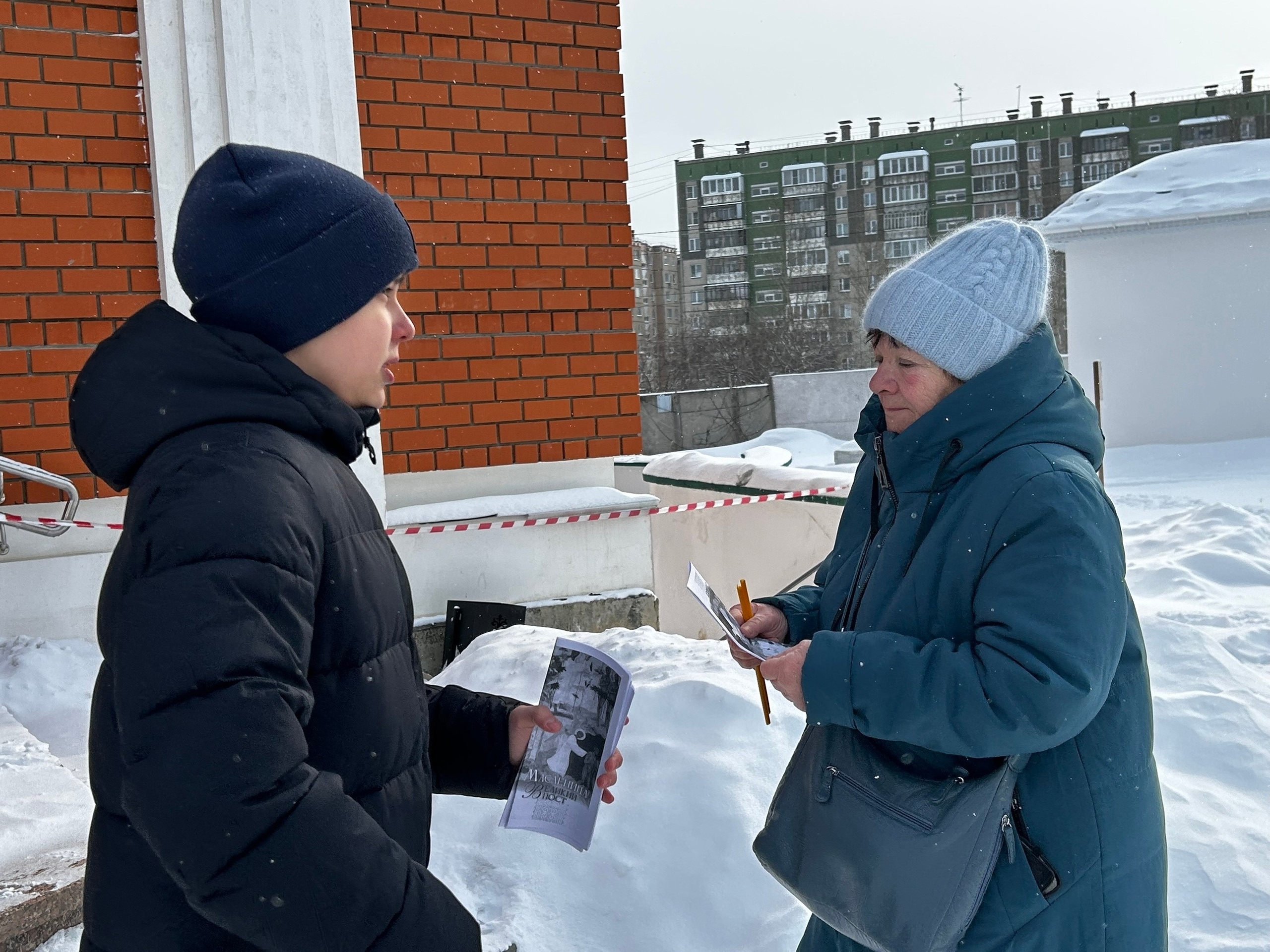 К акции присоединились подростки из клуба «Наследник» при храме преподобного Сергия Радонежского — они общались с прихожанами на территории храма собора Рождества Христова, рассказывали о предстоящем посте.