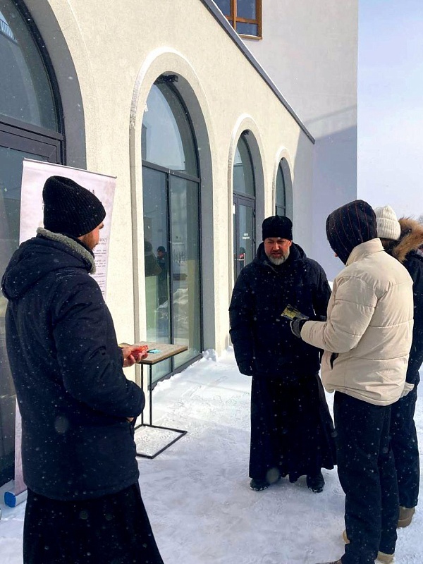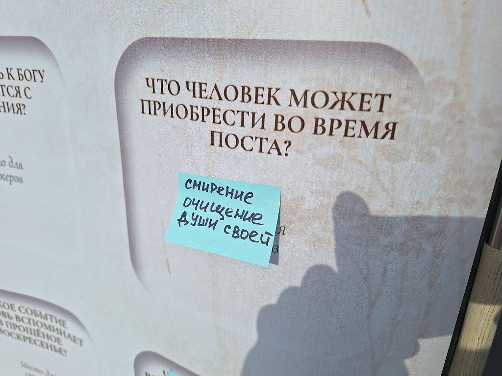 Миссионеры раздавали горожанам буклеты о подготовке к посту и беседовали о его духовном смысле. На территории храма Иоанна Воина поместили информационный баннер о церковной традиции.