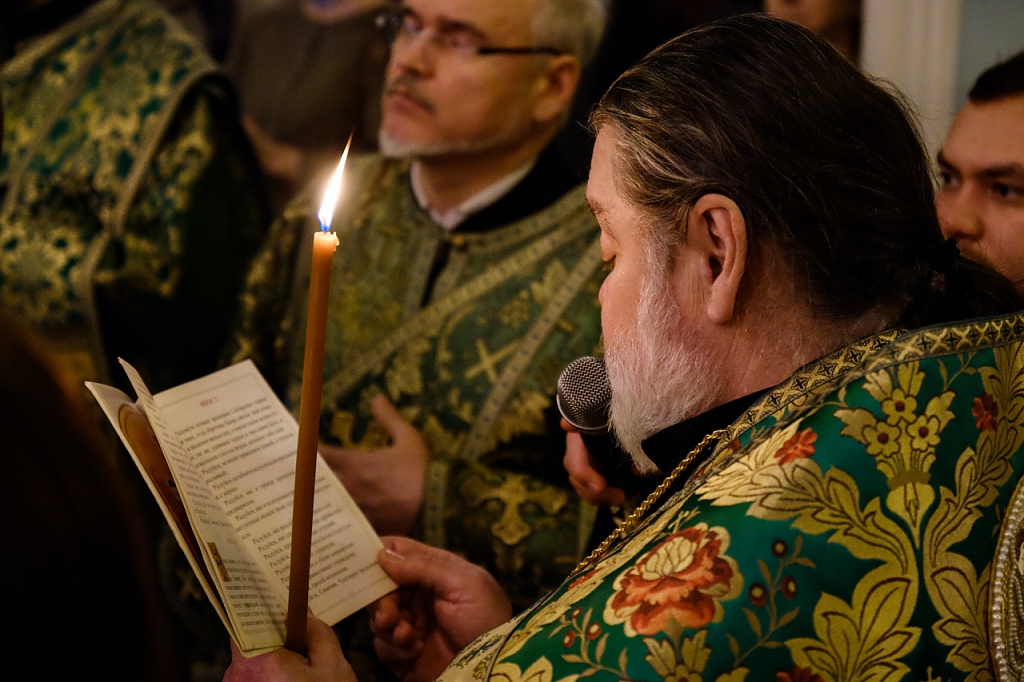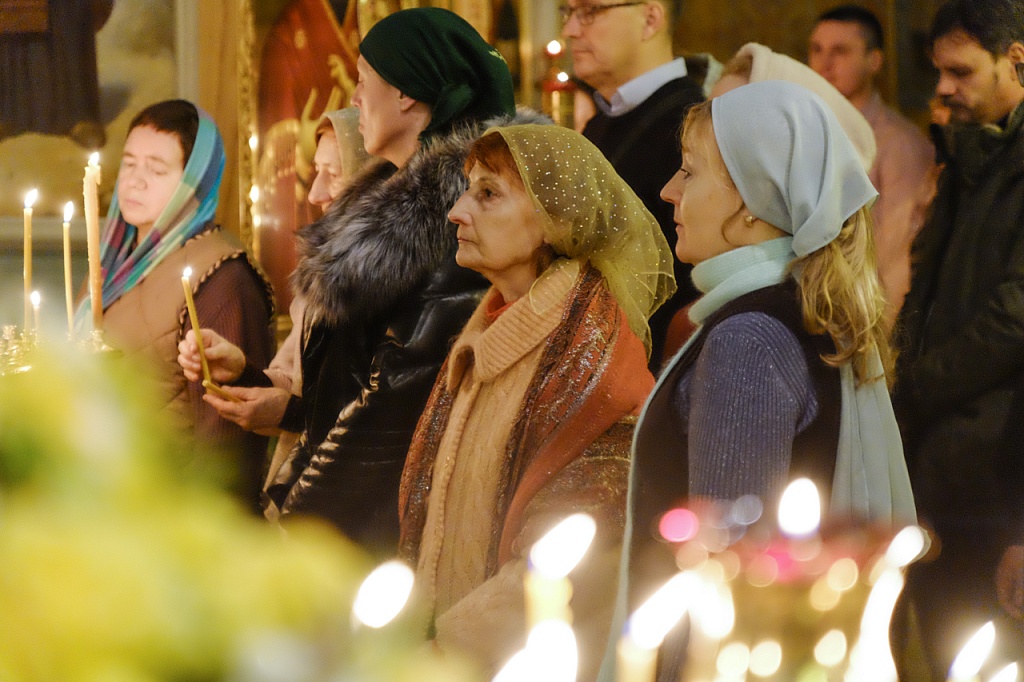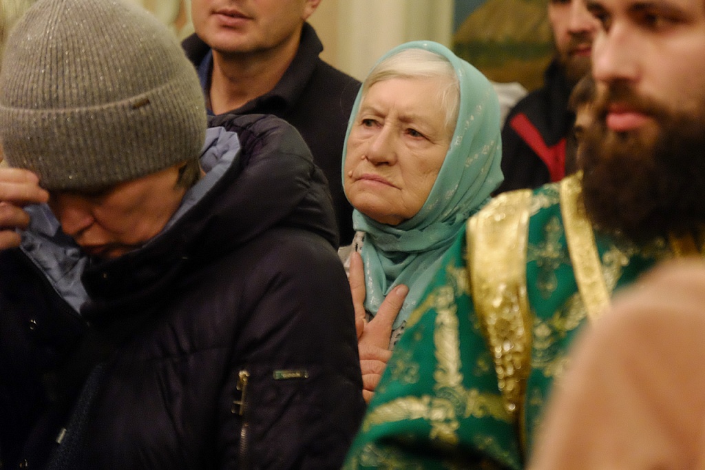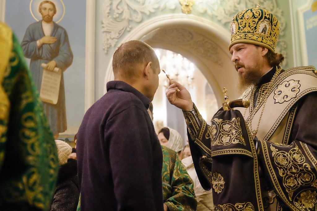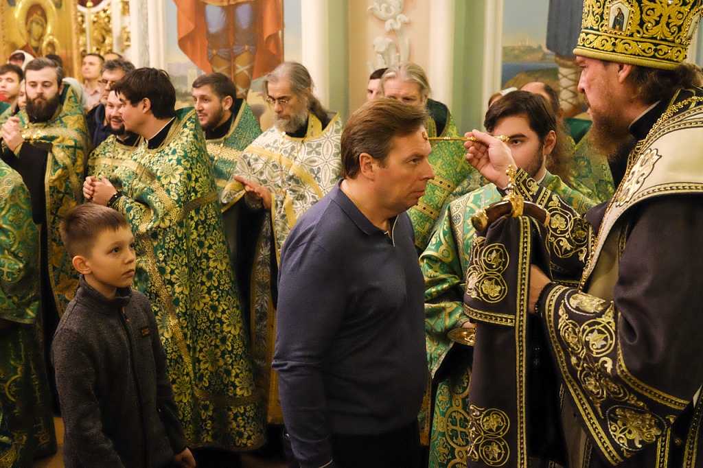 Во время чтения канона митрополит Алексий помазал верующих освященным елеем.