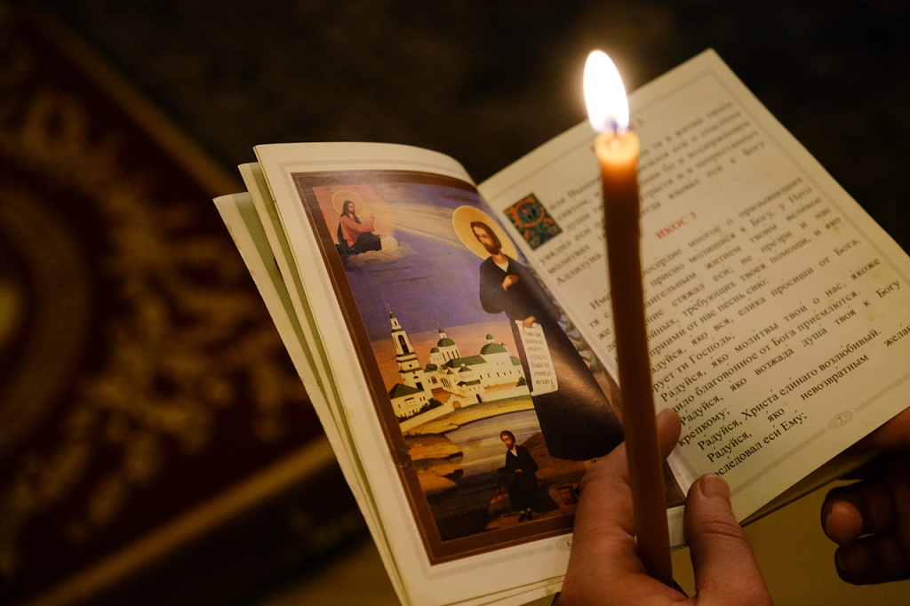 За богослужением был прочитан акафист святому праведному Симеону Верхотурскому, прочитана молитва ему и пропето величание. Также читался отрывок из Евангелия от Матфея (Мф.11:25-30), в котором Господь призывает всех труждающихся и обремененных прийти к Нему, обещая мир и покой душам их.