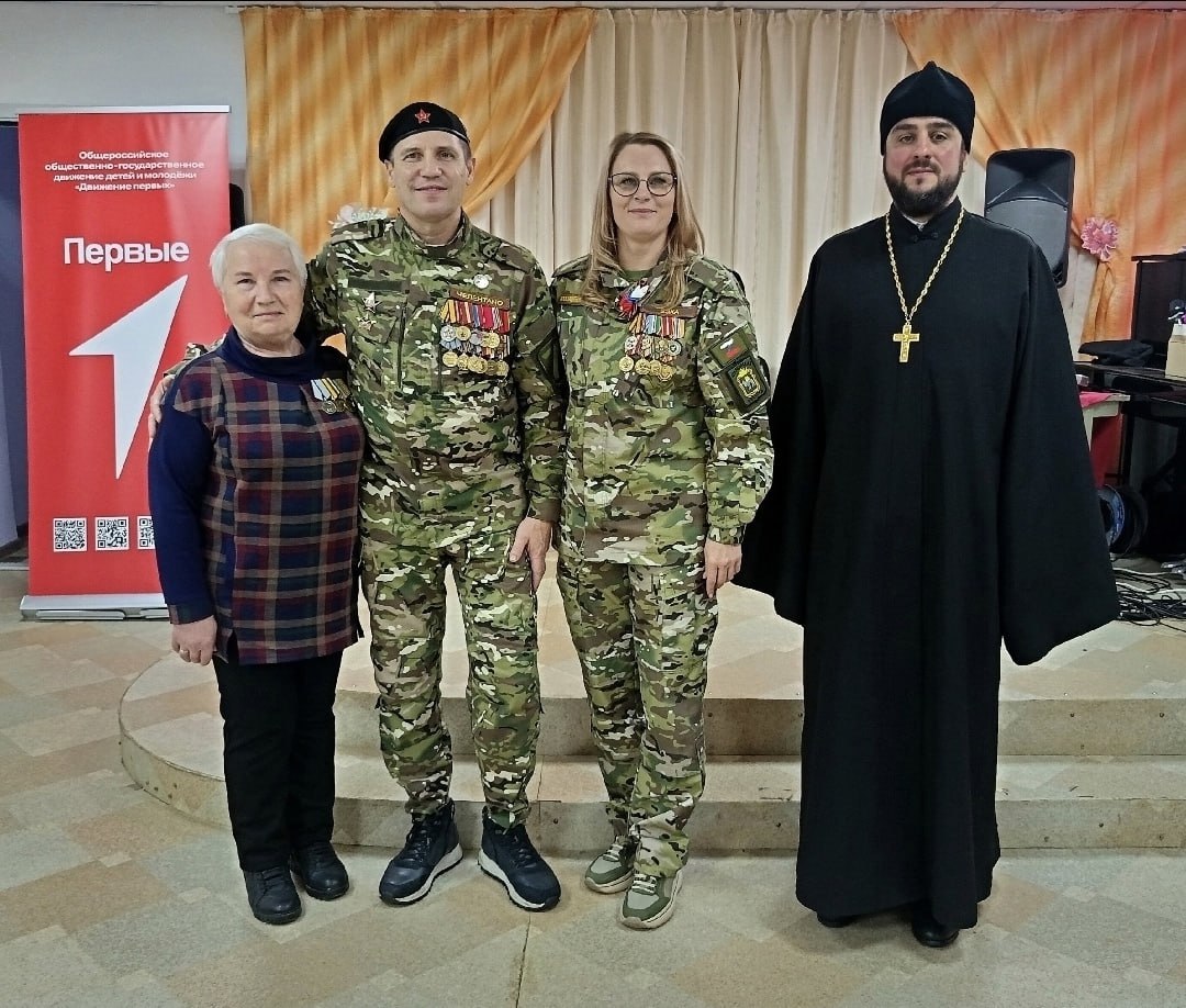 Настоятель храма Архистратига Михаила поселка Томинский иерей Иоанн Парфенов рассказал ребятам о духовных ценностях, которые лежат в основе подвига, о милосердии и сострадании, которые важны не только на поле боя, но и в обычной жизни.