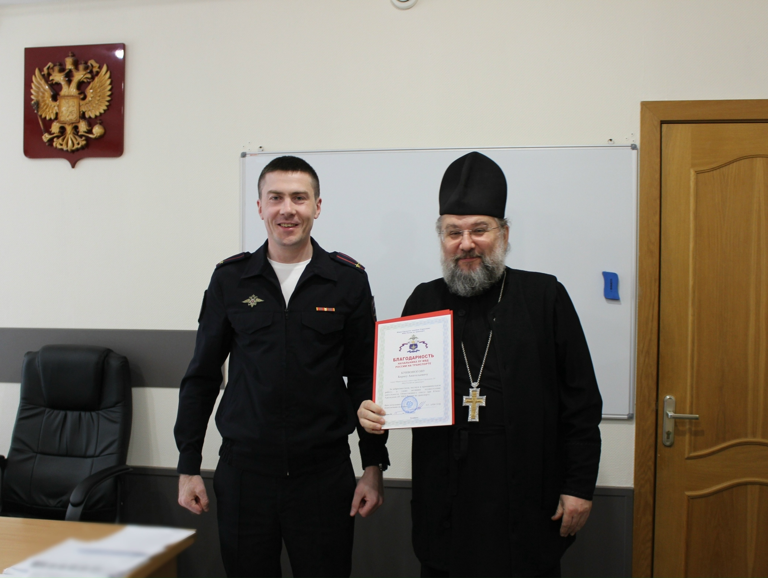 В ходе встречи временно исполняющий обязанности начальника управления подполковник полиции Алексей Аристов вручил благодарности наиболее активным участникам предыдущего состава совета. Среди награжденных — настоятель храма благоверного князя Александра Невского протоиерей Борис Кривоногов, отмеченный за добросовестную, честную и принципиальную работу в составе Общественного совета.