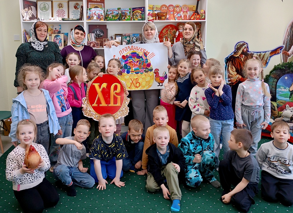 Сам приход в эти дни тоже был наполнен детским смехом: на экскурсии приходили воспитанники детских садов и ученики школы № 23. Для ребят проводили мастер-классы на звоннице, творческие занятия, чтение Евангелия и экскурсии по храму. Гостями стали и подопечные центра помощи «Доброта» — дети с ОВЗ и их родители. На память каждый увез творческую поделку и пасхальный кулич, приготовленный приходскими семьями.