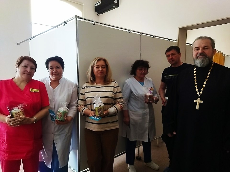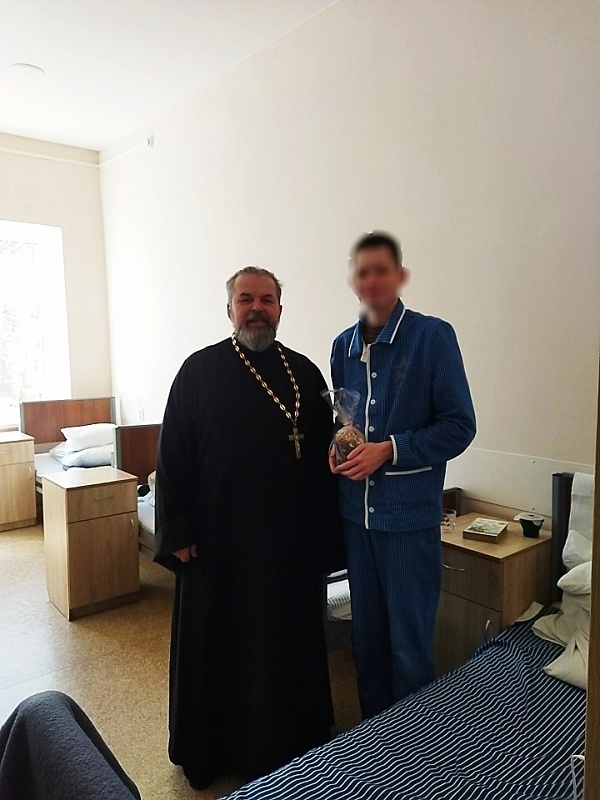Священник Свято-Симеоновского кафедрального собора Челябинска иерей Валерий Кузьмин и руководитель Социальной службы Яна Демидова пришли в Окружной военный клинический госпиталь. Они поздравили участников специальной военной операции и медиков, передали куличи, открытки, православную литературу и икону Воскресения Христова — чтобы и здесь звучала пасхальная радость.