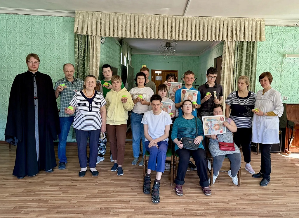Клирик Одигитриевского женского монастыря диакон Максим Николенко встретился с подопечными Комплексного центра социального обслуживания населения Ленинского района. Он просто и тепло говорил о смысле Пасхи, о надежде и новой жизни, а потом вручил подарки.