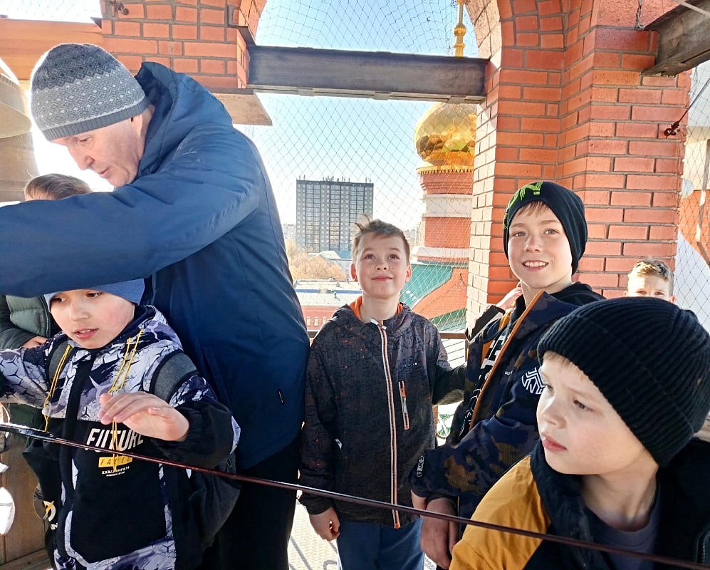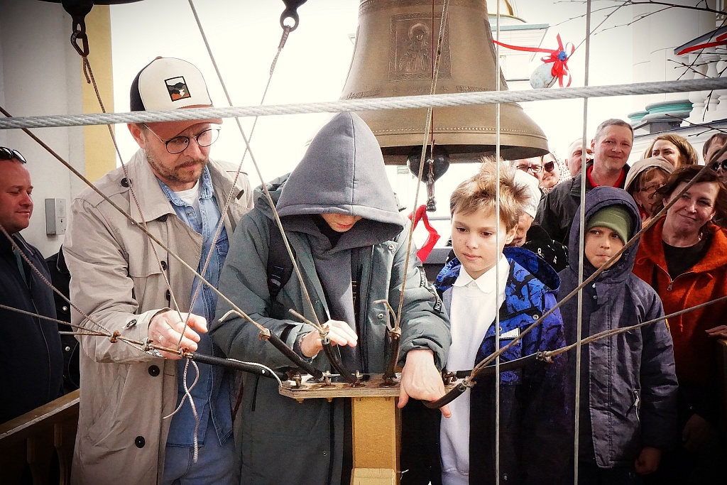 В Антипасху прихожане храма святителя Николая Чудотворца деревни Малиновка посетили колокольню кафедрального собора Рождества Христова. Звонари рассказали гостям о колоколах и звонарском деле, а затем каждый — от малышей до взрослых — смог попробовать себя в роли звонаря.