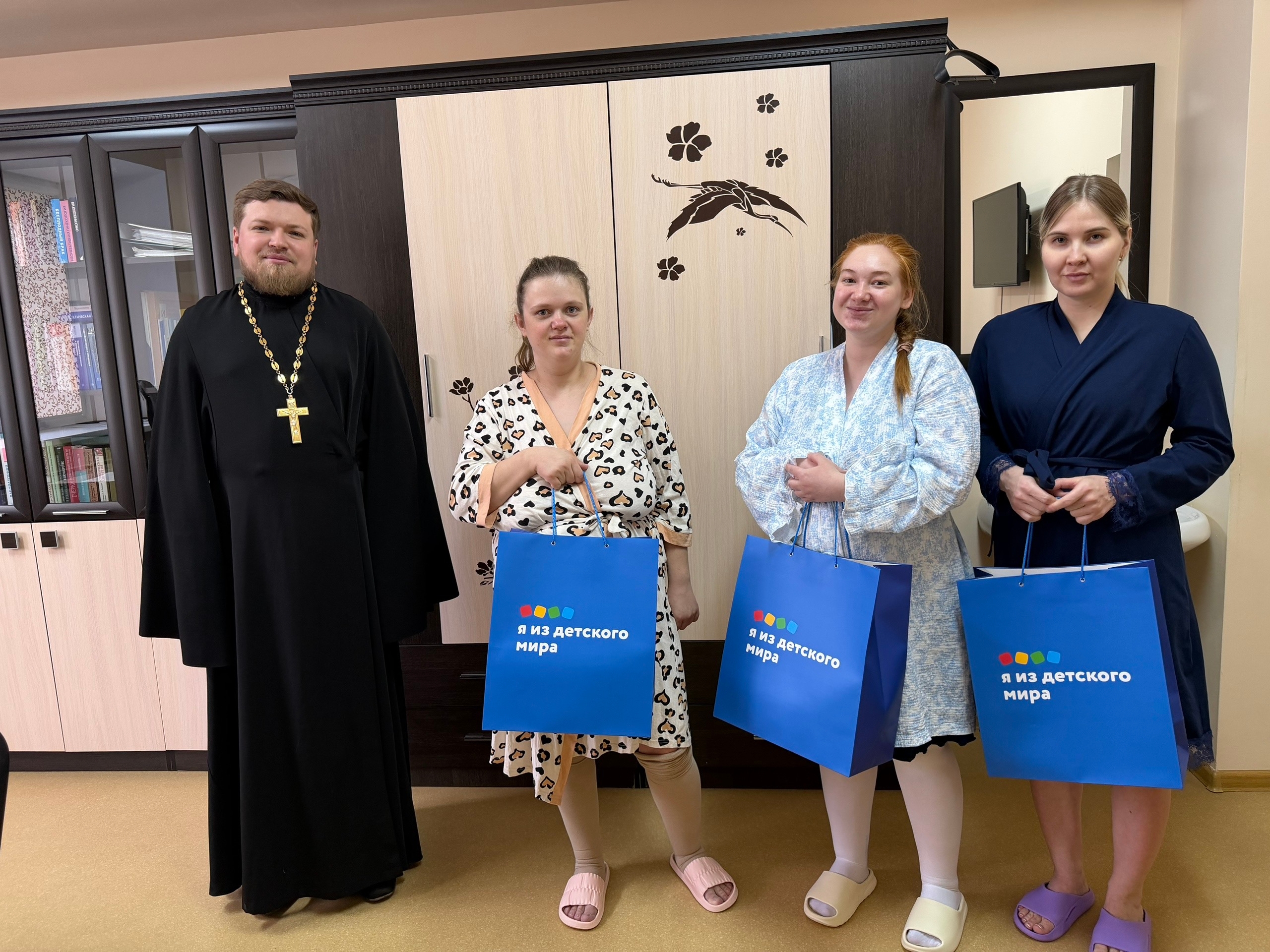 По сложившейся традиции отец Георгий обратился к женщинам с пасхальным приветствием, пожелал здоровья и благоденствия, а также вручил полезные подарки для малышей.
