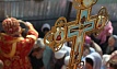 После богослужения верующие обошли храм крестным ходом. Их путь лежал между строительным заборчиком и кирпичной стеной недостроенного храма. Митрополит Никодим щедро окроплял прихожан святой водой со словами: «Святый мучениче Иоанне, моли Бога о нас!»