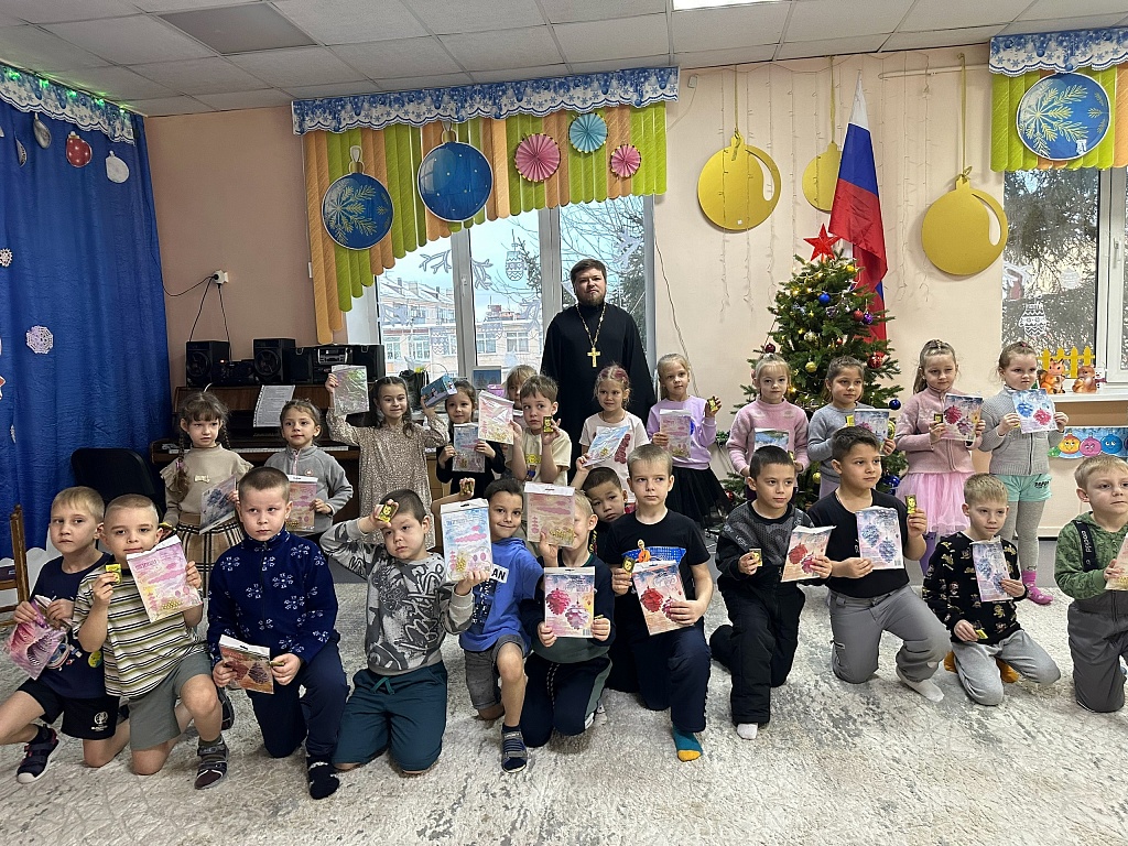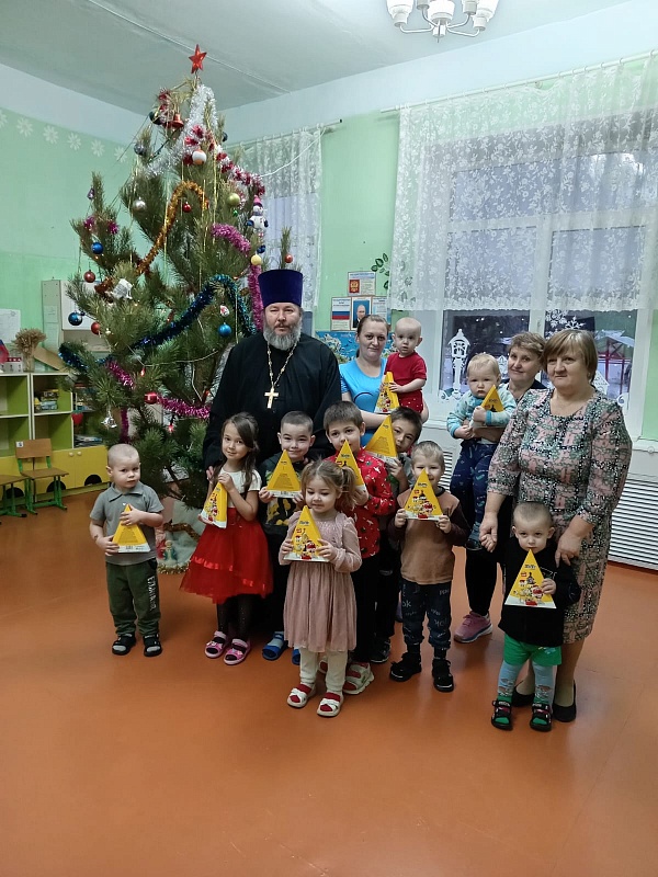 А в Миассе настоятель храма Благовещения иерей Георгий Голоскоков рассказал о грядущем Рождестве воспитанникам и педагогам детского сада. Показал мультфильм, ответил на вопросы и вручил творческие подарки, которыми можно украсить елочки дома.