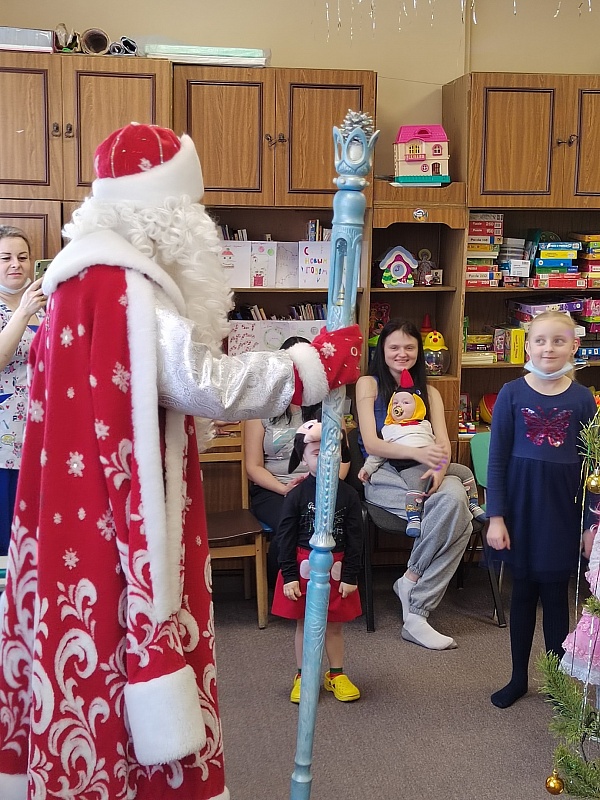 Дедушка Мороз от «Фавора» поздравил малышей с наступающим Новым годом. Даже в больничных стенах ему удалось создать атмосферу чуда. Ребятишки вместе с родителями повеселились с Дедом Морозом, водили хоровод вокруг елочки, забыв о своих болячках, а в конце праздника получили сладкие подарки.