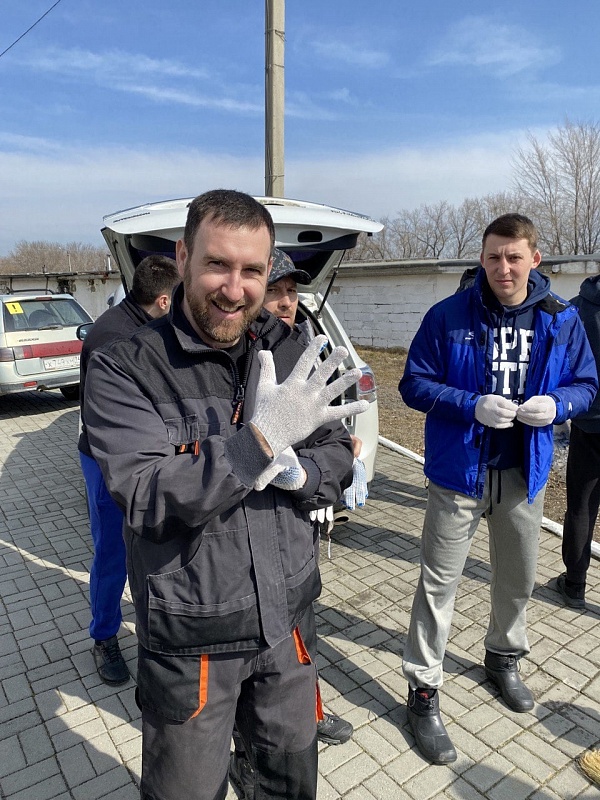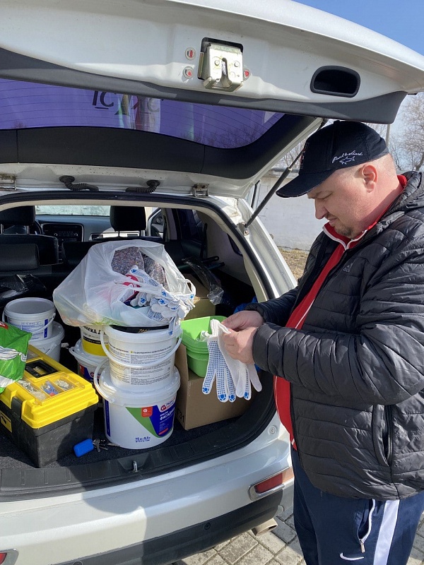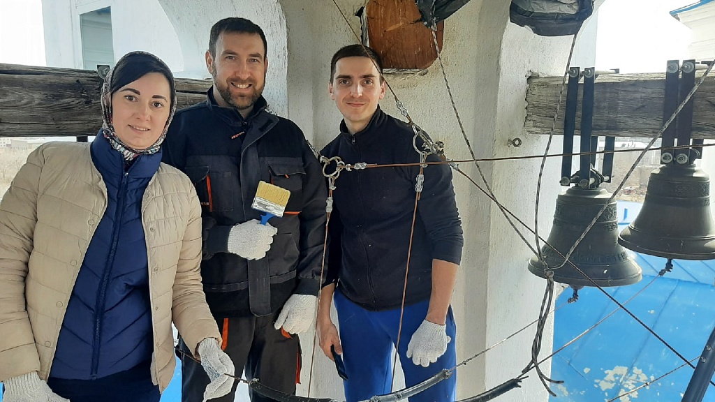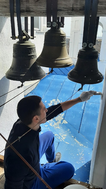 Весело и дружно челябинцы распределились по послушаниям. Пока одни красили бордюры на территории и стены монастыря, другие убирали мусор за оградой и белили колокольню храма Преображения Господня.