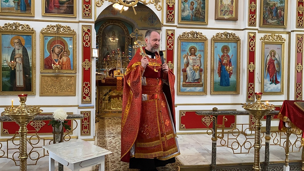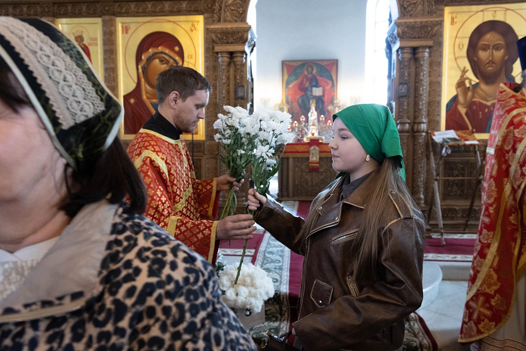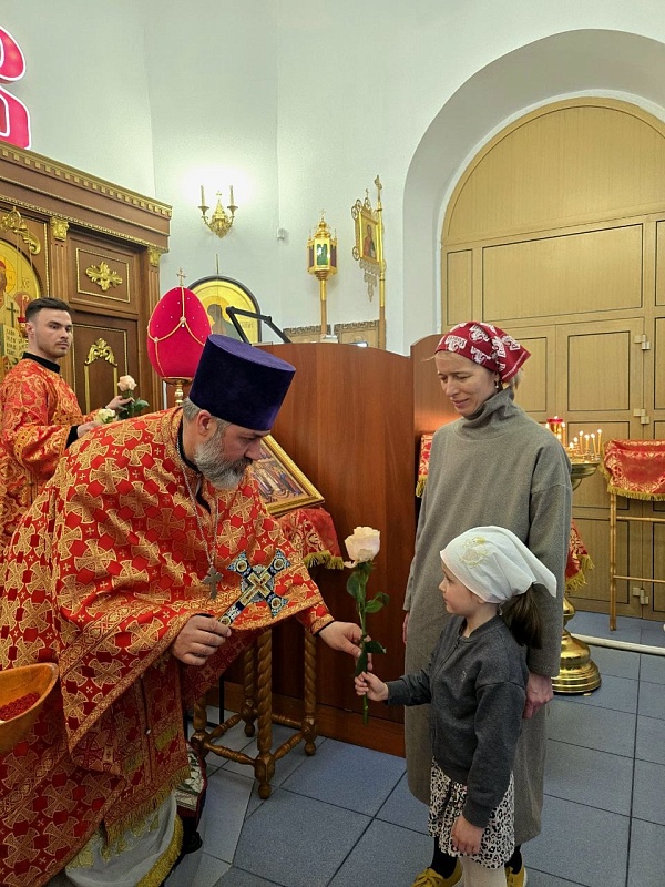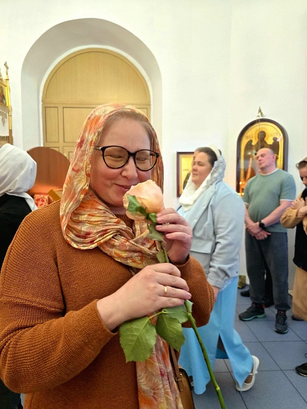 В храме иконы Божией Матери «Скоропослушница» в Новосинеглазово протоиерей Алексей Егоров после службы рассказал о женах-мироносицах и подарил прихожанкам алые розы.