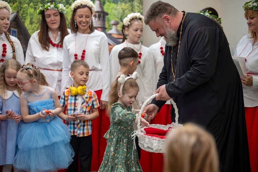 В программе были песочная анимация, евангельский спектакль о женах-мироносицах и Марии Магдалине, выступления воспитанников воскресных школ, стихи, песни и семейные номера. После концерта на территории храма Святителя Николая Чудотворца прошли мастер-классы, пасхальные игры, экскурсия на колокольню и общее чаепитие. Каждому ребенку вручили пасхальный пряник.