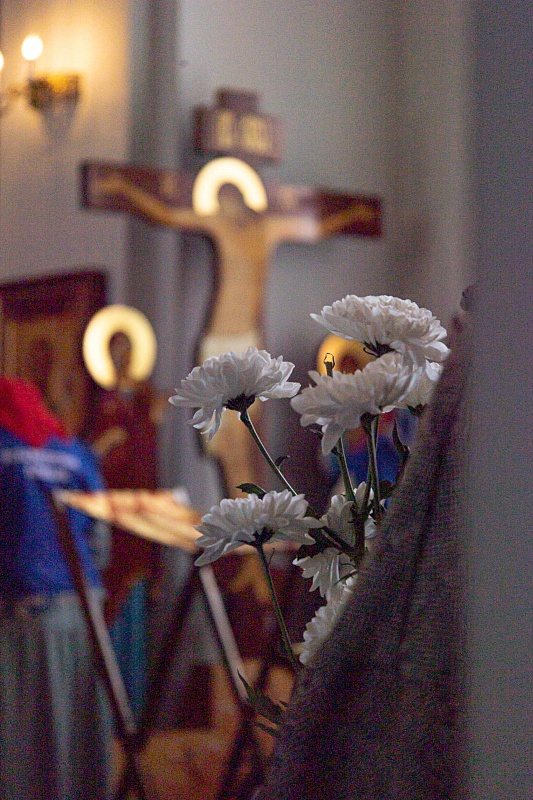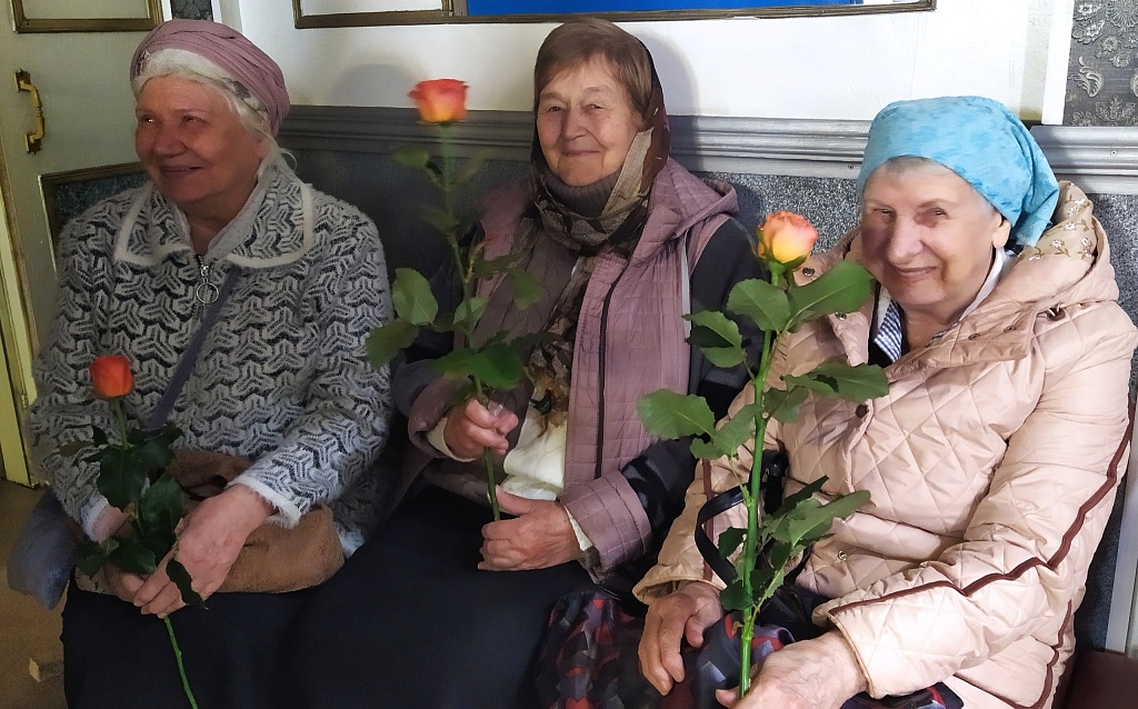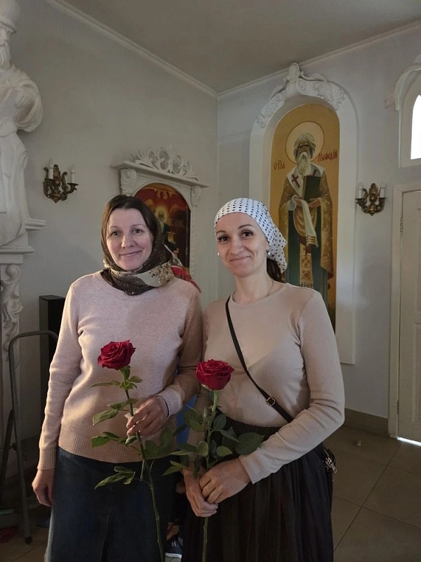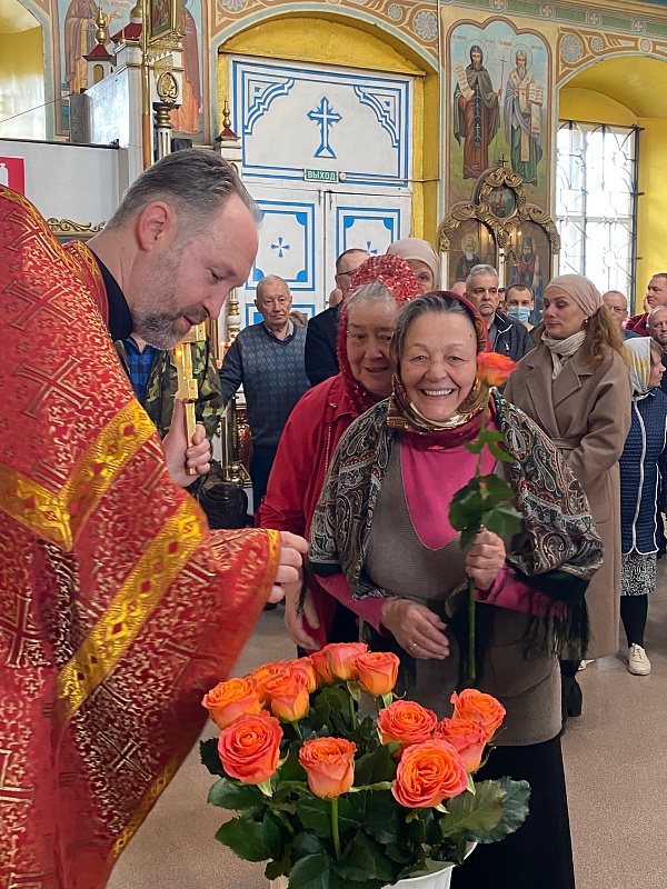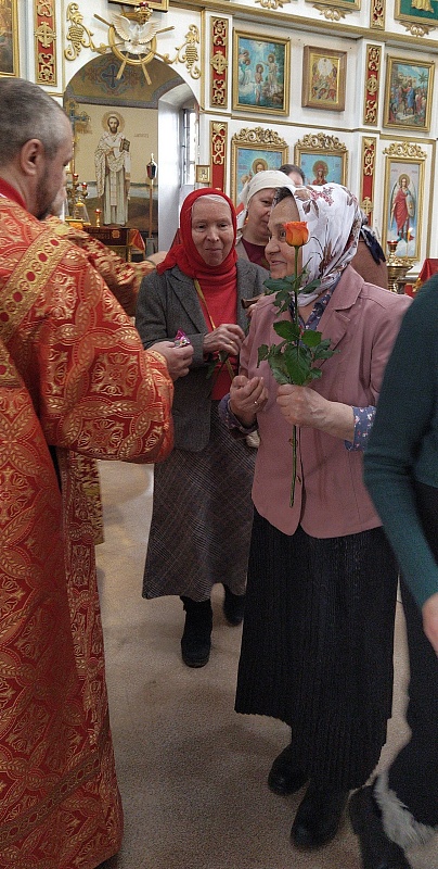 В храме иконы Божией Матери «Знамение» в селе Воскресенском после Литургии настоятель иерей Иоанн Грыгораш поздравил прихожанок и вручил каждой по цветку.