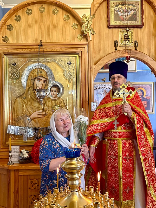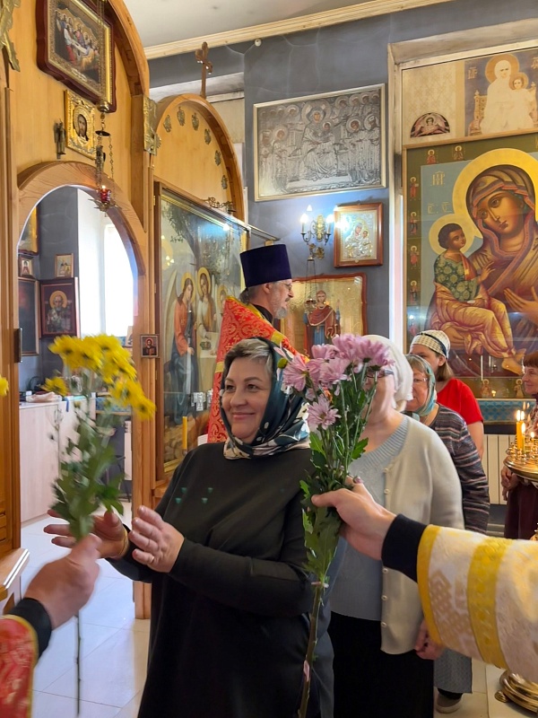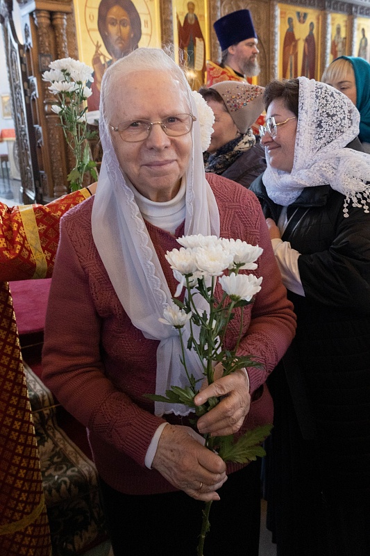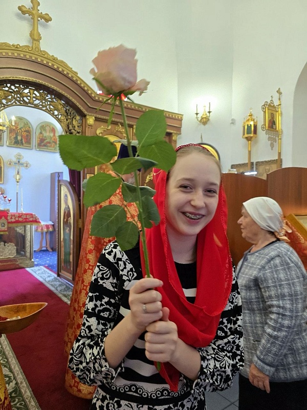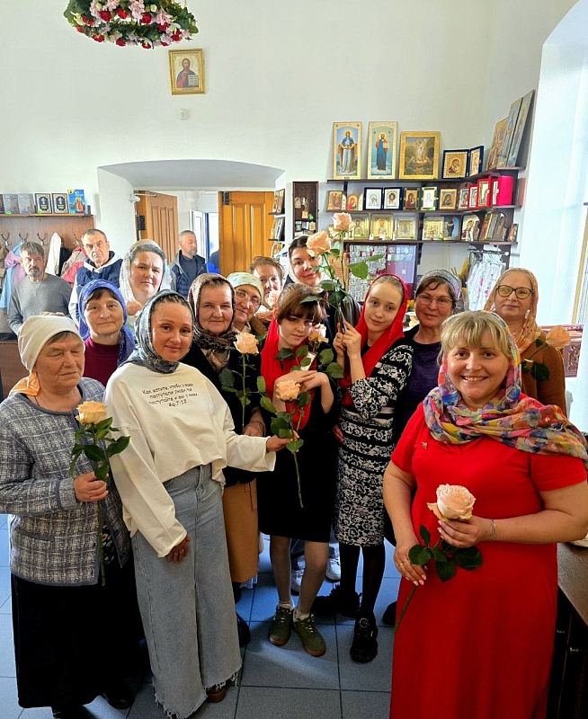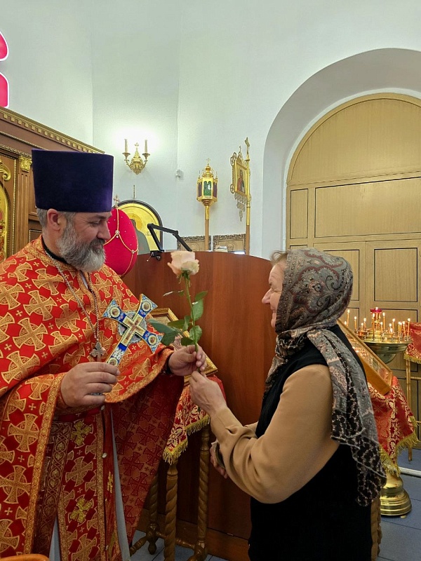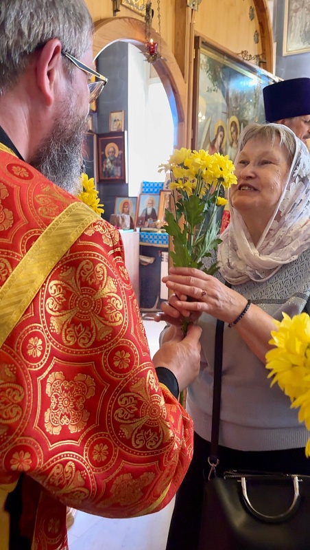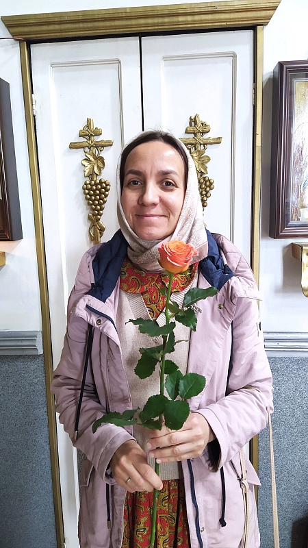 В храме Рождества Богородицы Верхнего Уфалея настоятель протоиерей Александр Городинский поздравил прихожанок с праздником каждой и вручил живую розу.