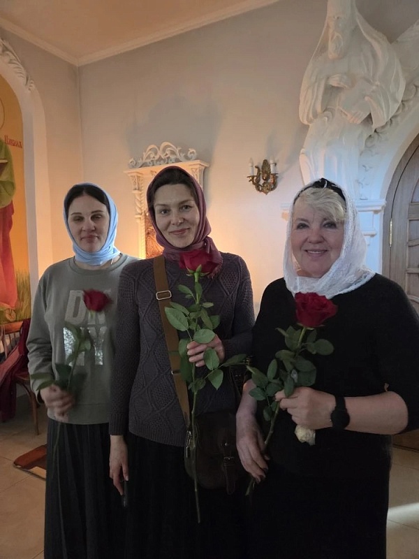 В Свято-Симеоновском кафедральном соборе после ранней и поздней Литургии клирики поздравили женщин с праздником и вручили им цветы. Поздравили и сотрудниц храма.