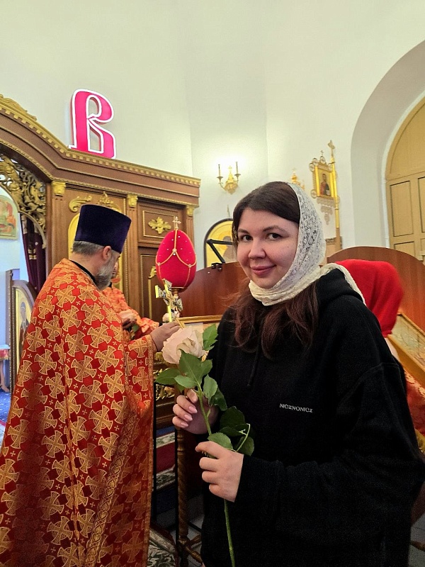 В храме святых пророка Илии и мученицы Татианы после Божественной литургии настоятель протоиерей Евгений Мартенец поздравил прихожанок с днем жен-мироносиц и напомнил о значении этого праздника для православных женщин. По традиции каждая девочка, девушка и женщина получила в подарок розу.