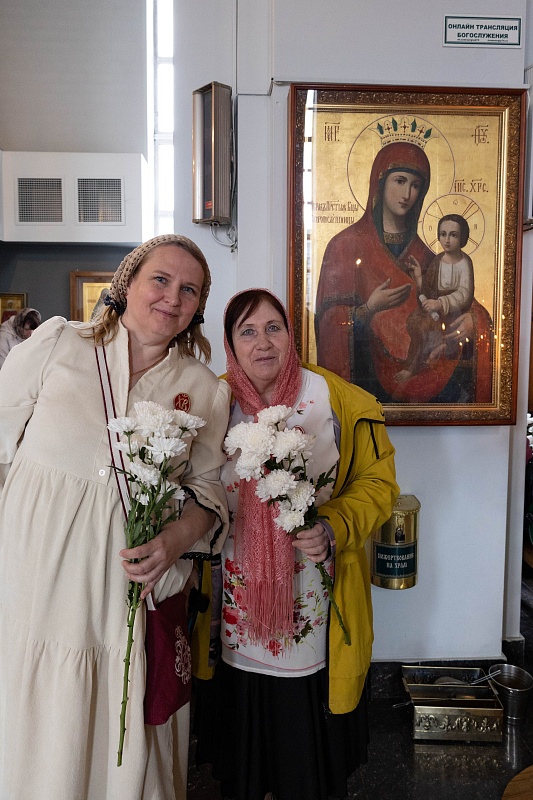 Детская воскресная школа подарила прихожанкам брелоки с изображением собора, а во дворе работала полевая кухня. Ученики и преподаватели приняли участие в крестном ходе.
