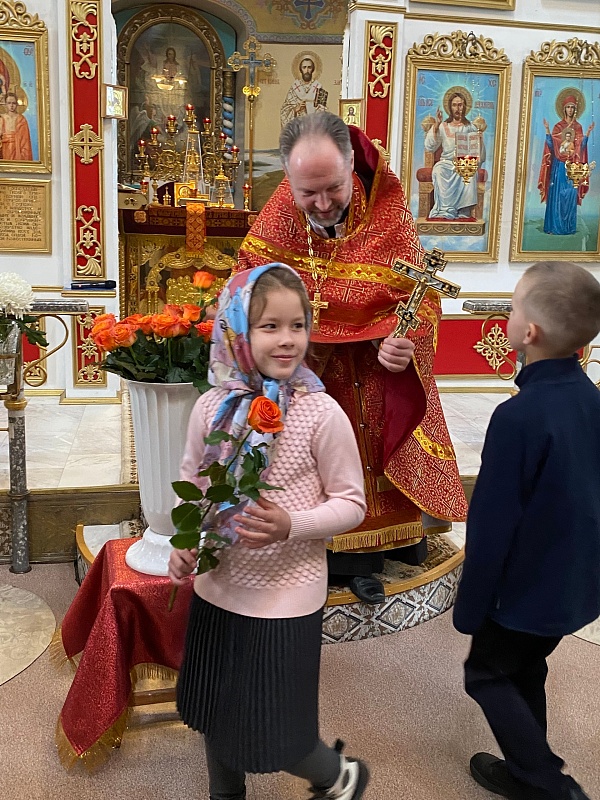 В храме иконы Божией Матери «Нечаянная Радость» настоятель иерей Кирилл Горбунов поздравил женщин и девочек с православным женским днем, а ученики воскресной школы подготовили подарки для мам.