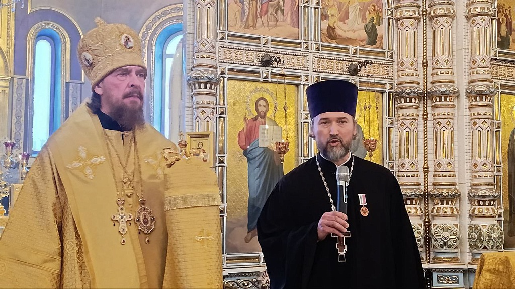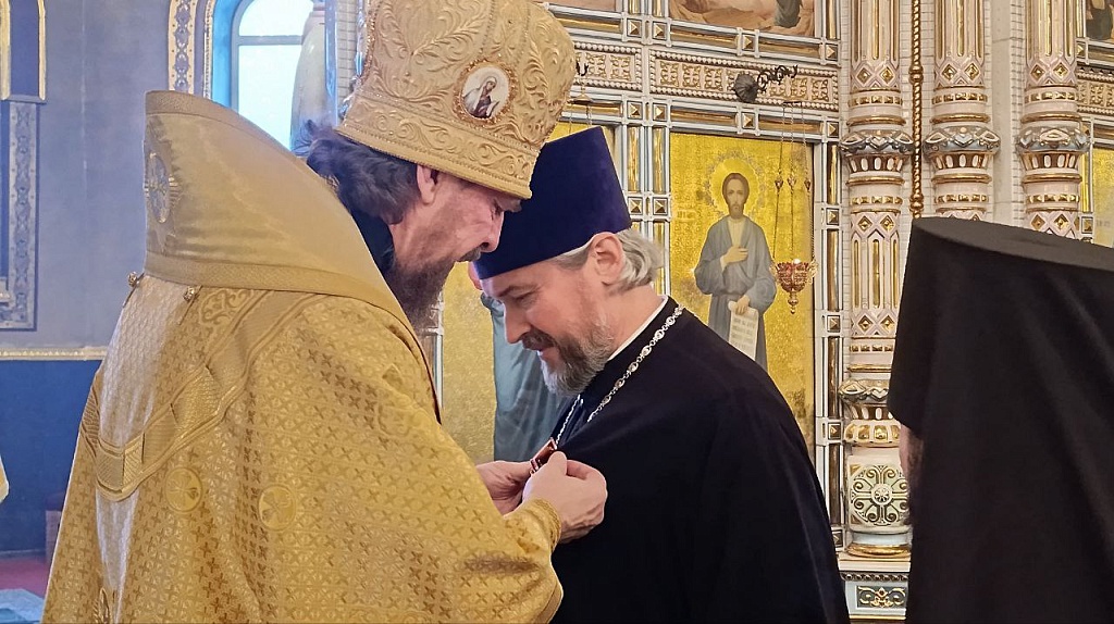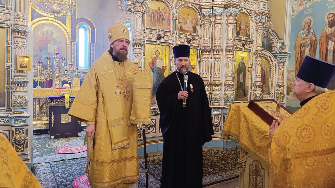 Митрополит Алексий наградил протоиерея Андрея Алексеева за усердное служение медалью Челябинской епархии. Отец Андрей сердечно поблагодарил владыку за награду и отметил активное окормление спортсменов в Челябинской митрополии.