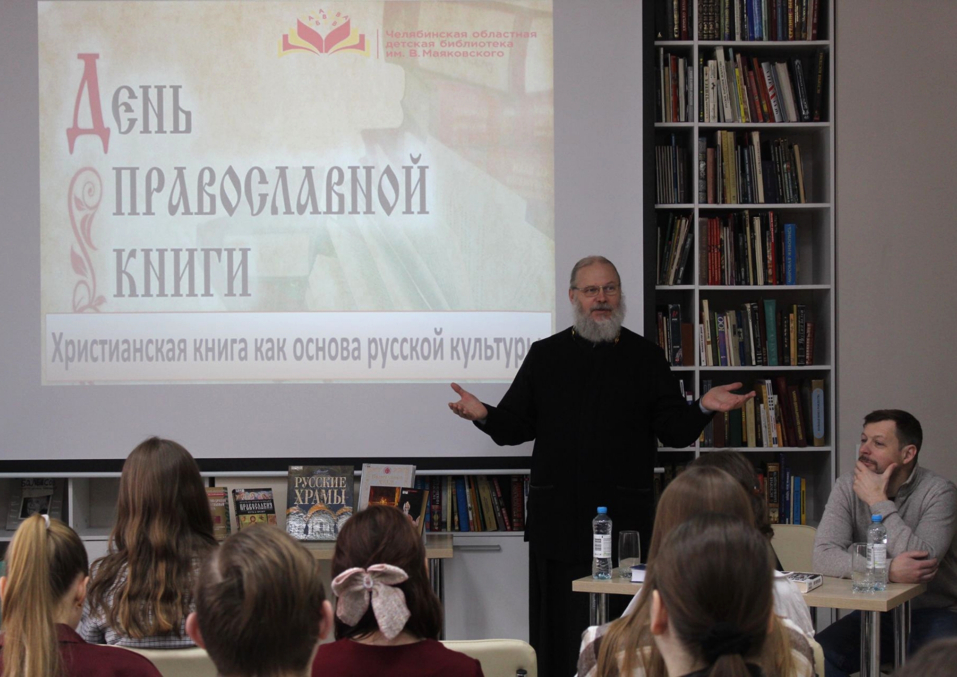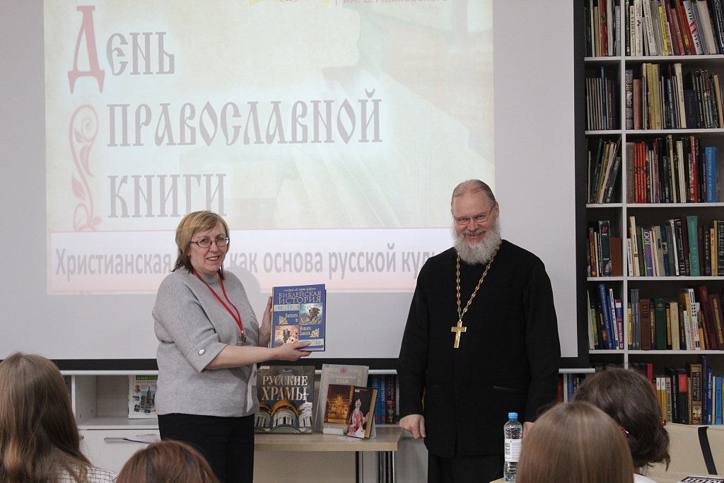 В библиотеке имени В. Маяковского отец Андрей встретился со старшеклассниками. Он объяснил, что православная книга — это не только жития святых, но любая история, помогающая задуматься о добре, зле и своем месте в мире.