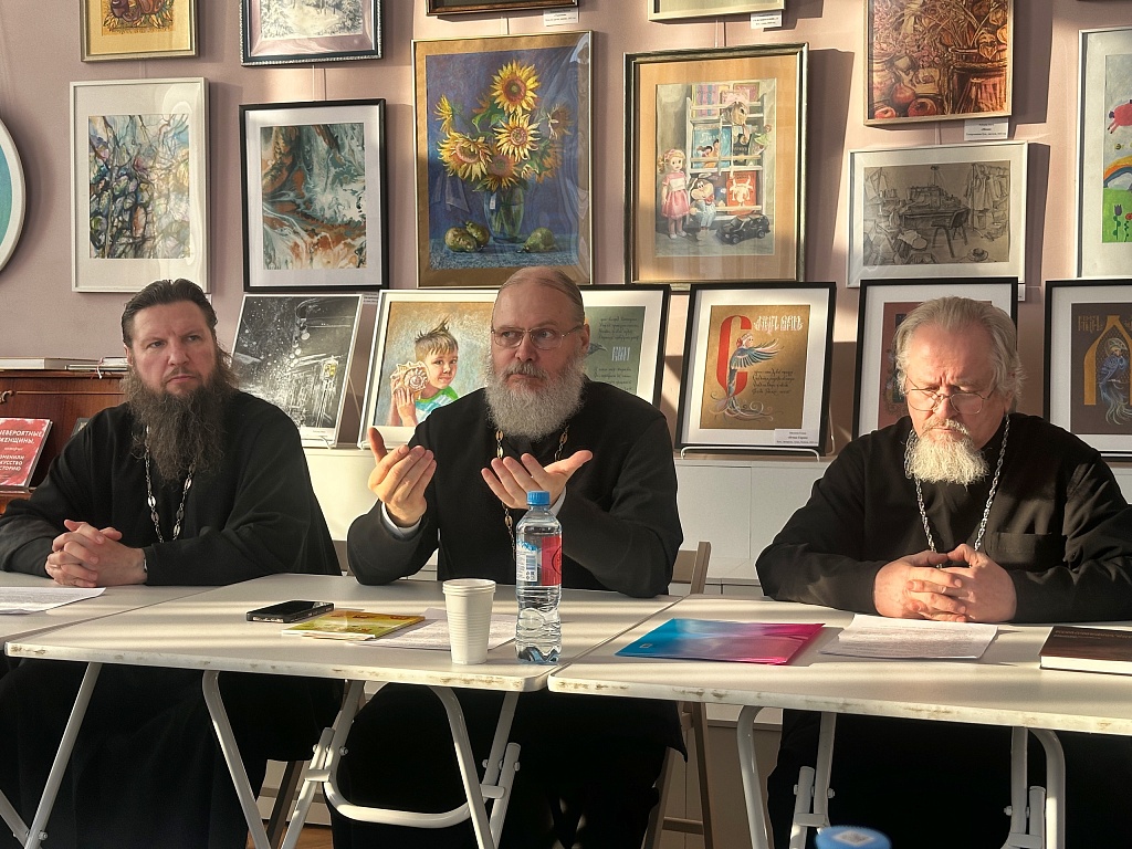 Руководитель епархиального отдела по взаимодействию с учреждениями культуры протоиерей Андрей Гупало принял участие в круглом столе и встрече со старшеклассниками, приуроченными к Дню православной книги.