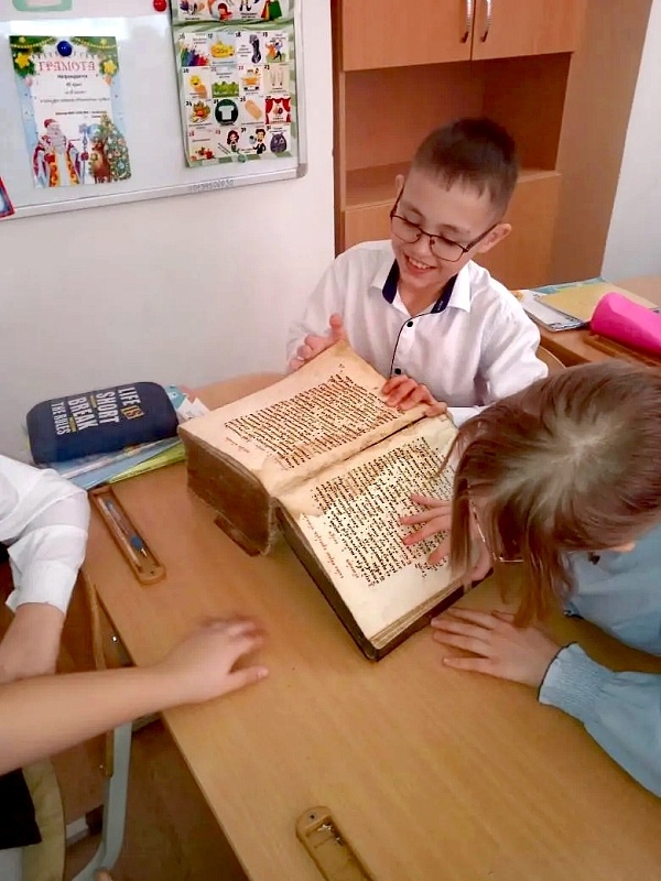 Интерес вызвали подлинные издания: современные богослужебные книги и редкие экземпляры царской России. Школьники смогли подержать их в руках, полистать страницы, попробовать читать на церковнославянском языке и разобраться в старинной нумерации.