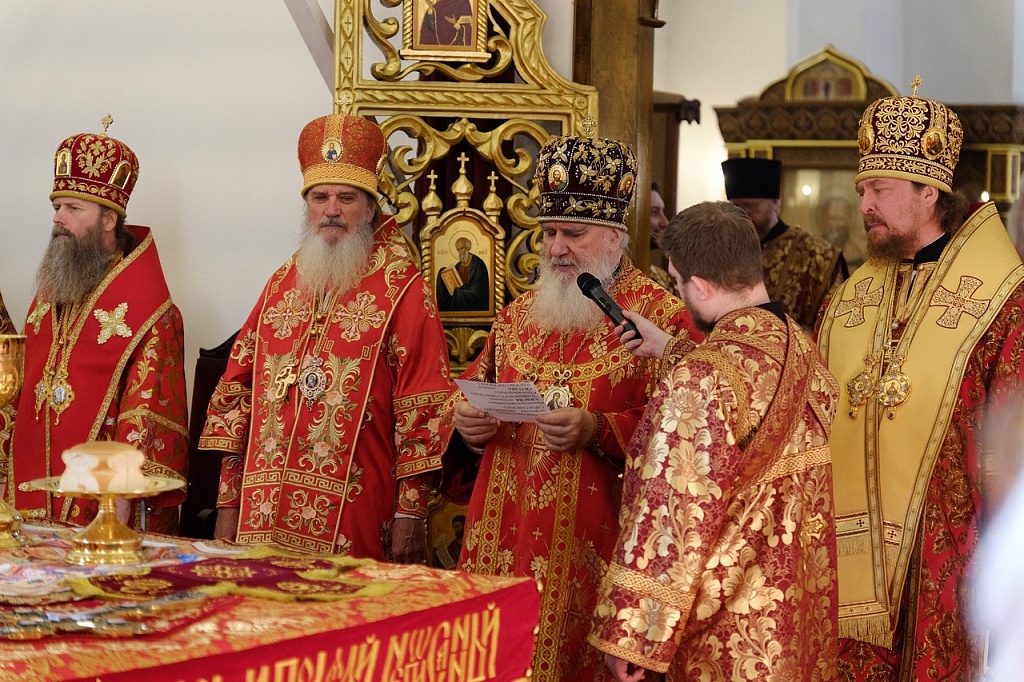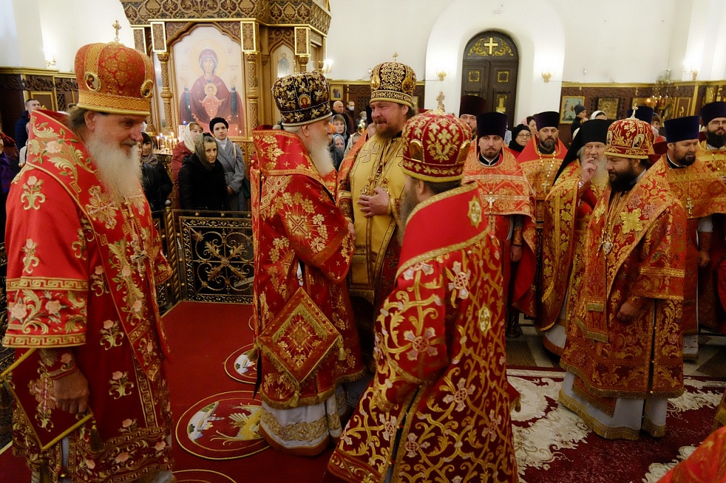 16 октября в магнитогорском кафедральном соборе Вознесения Христова сонм архиереев совершил Божественную литургию. Богослужение возглавили митрополит Калужский и Боровский Климент, митрополит Челябинский и Миасский Алексий, митрополит Оренбургский и Саракташский Петр, епископ Магнитогорский и Верхнеуральский Зосима, епископ Павло-Посадский Силуан, епископ Троицкий и Южноуральский Павел.